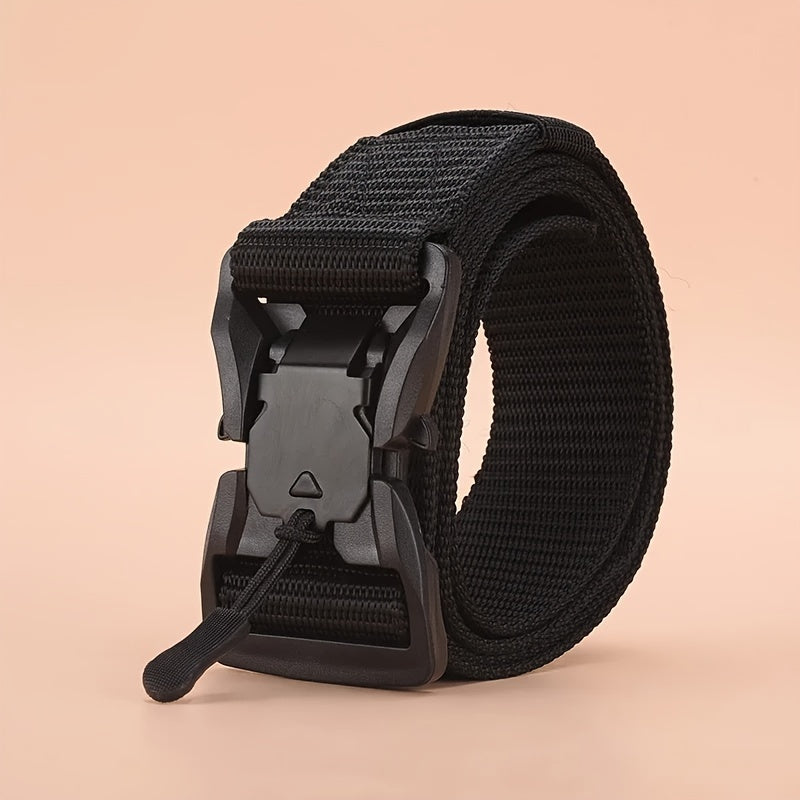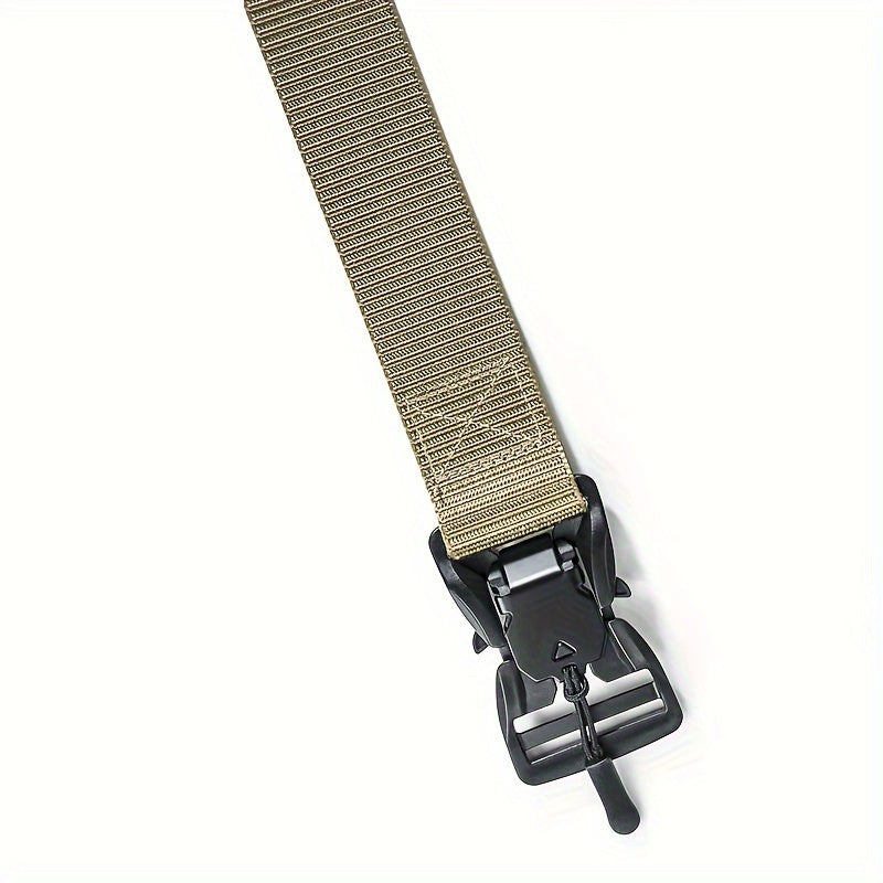 This military-style tactical belt features an alloy buckle and auto click fastener. It is perfect for casual or outdoor wear.