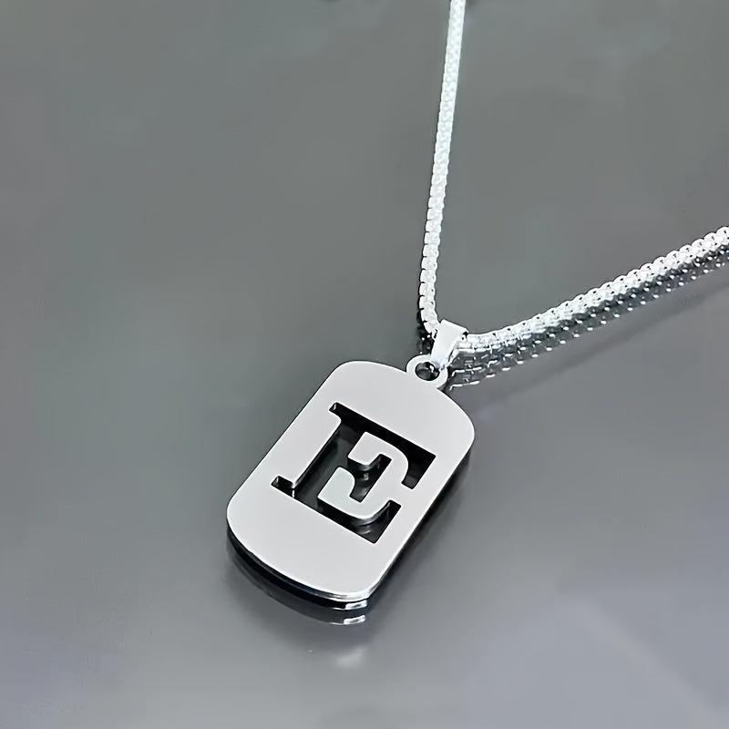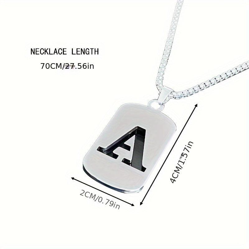 This modern pendant necklace is made of titanium steel, featuring script and numeric symbols. It is ideal for both men and women, with a fashionable military dog tag design.