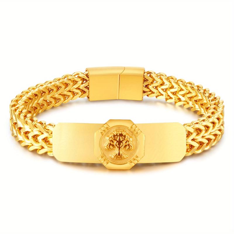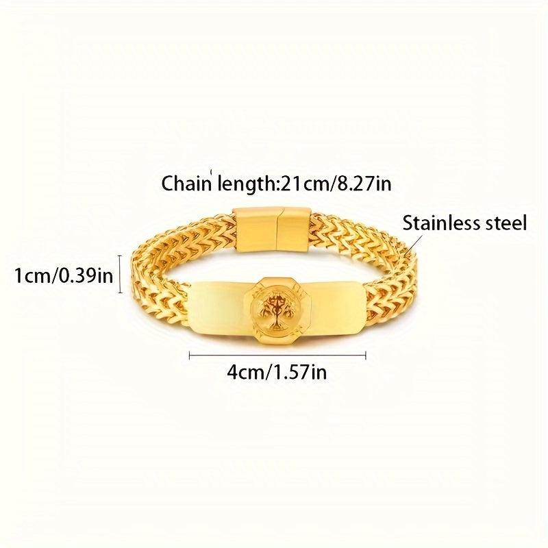 Vintage-inspired bracelet made of titanium steel with a tree of life design. Features a magnetic clasp for easy wear.