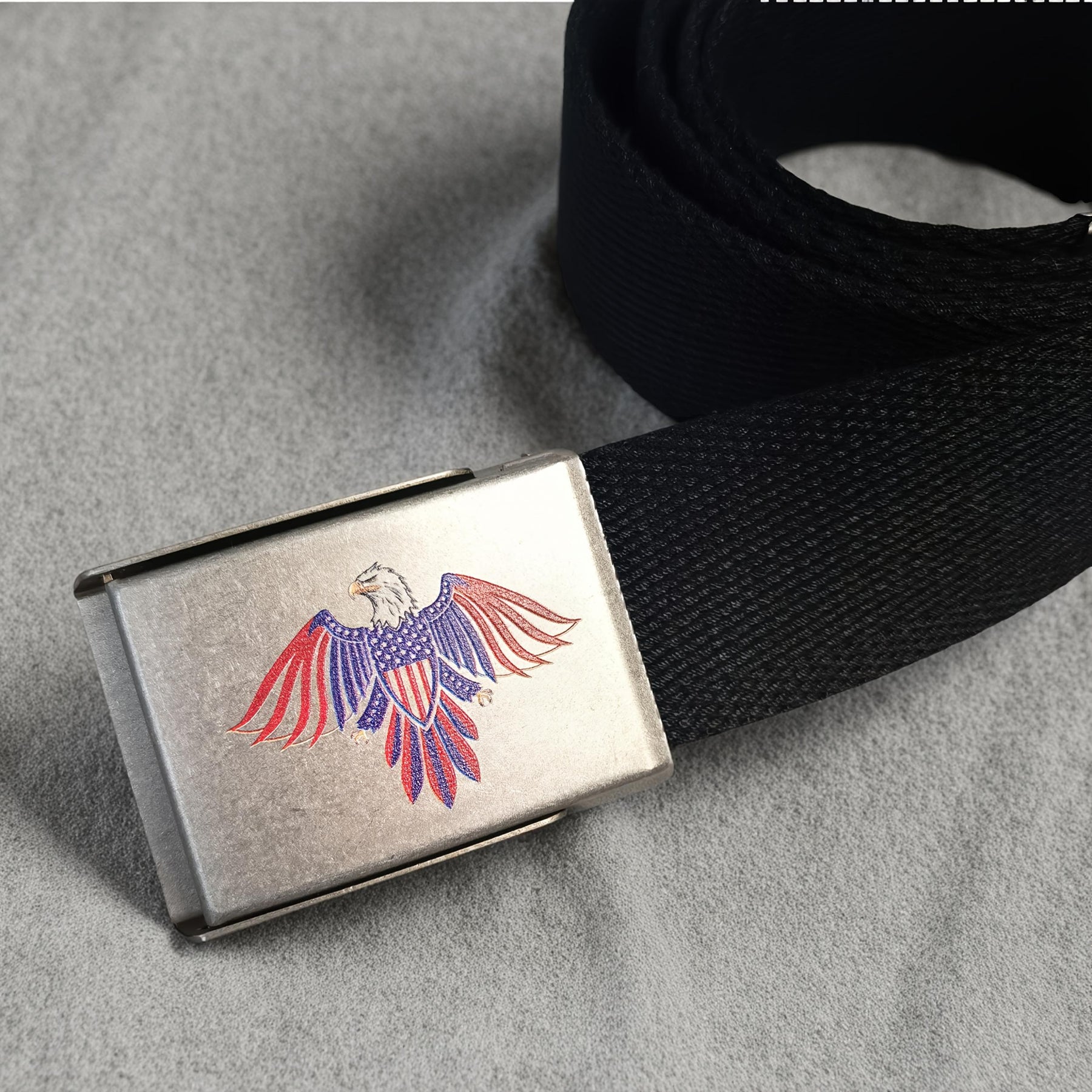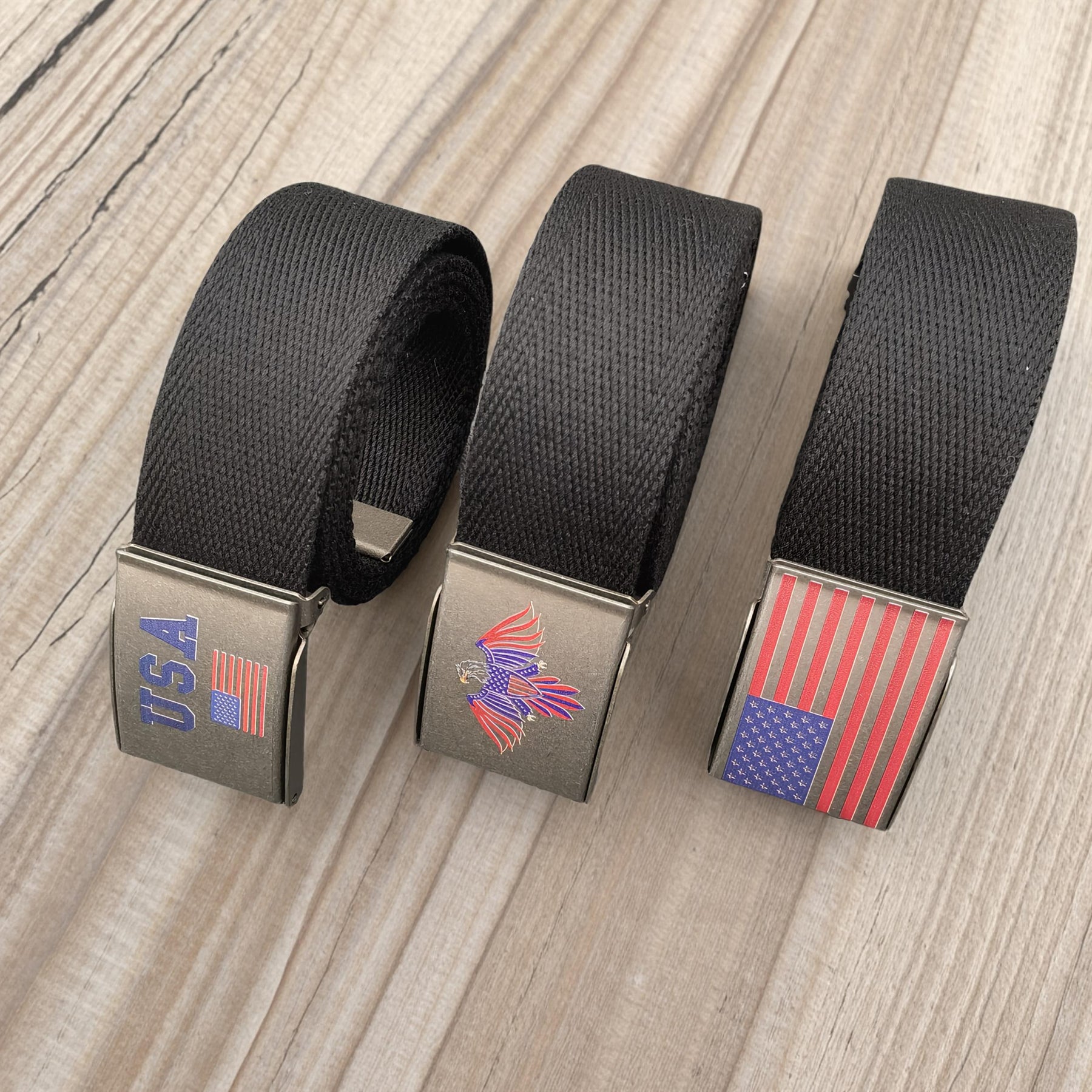 This canvas belt features national flag elements and creative patterns with a metal buckle. It is suitable for jeans and casual pants, making it a great souvenir gift.