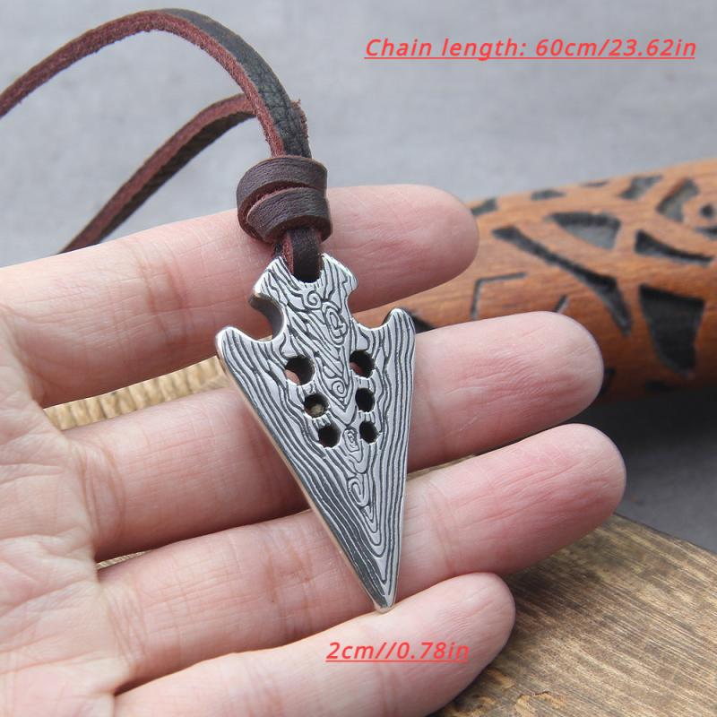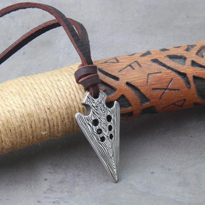 Surprise the men in your life with this beautifully crafted Viking spear pendant necklace made of Damascus steel. It comes with a leather chain for a rugged look.