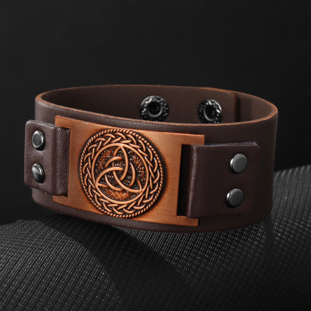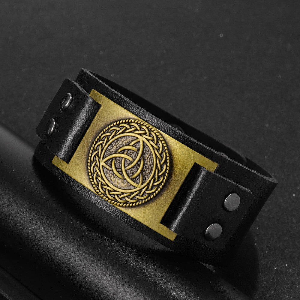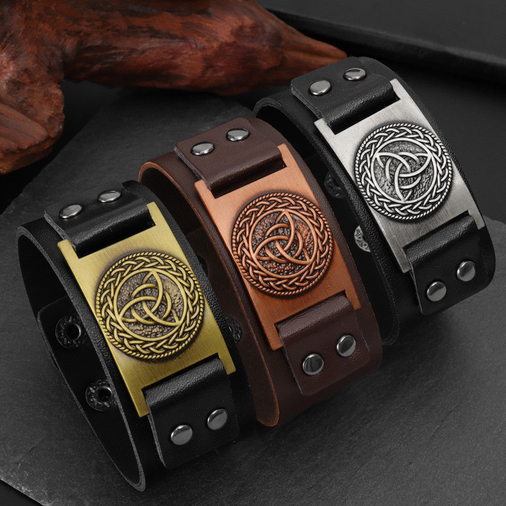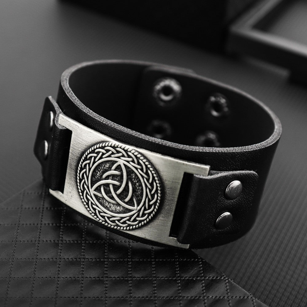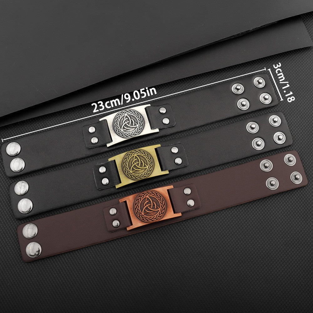 This Viking Retro Celtic Knot bracelet is made of faux leather, perfect for men who love punk style jewelry. It makes a great gift for any occasion.