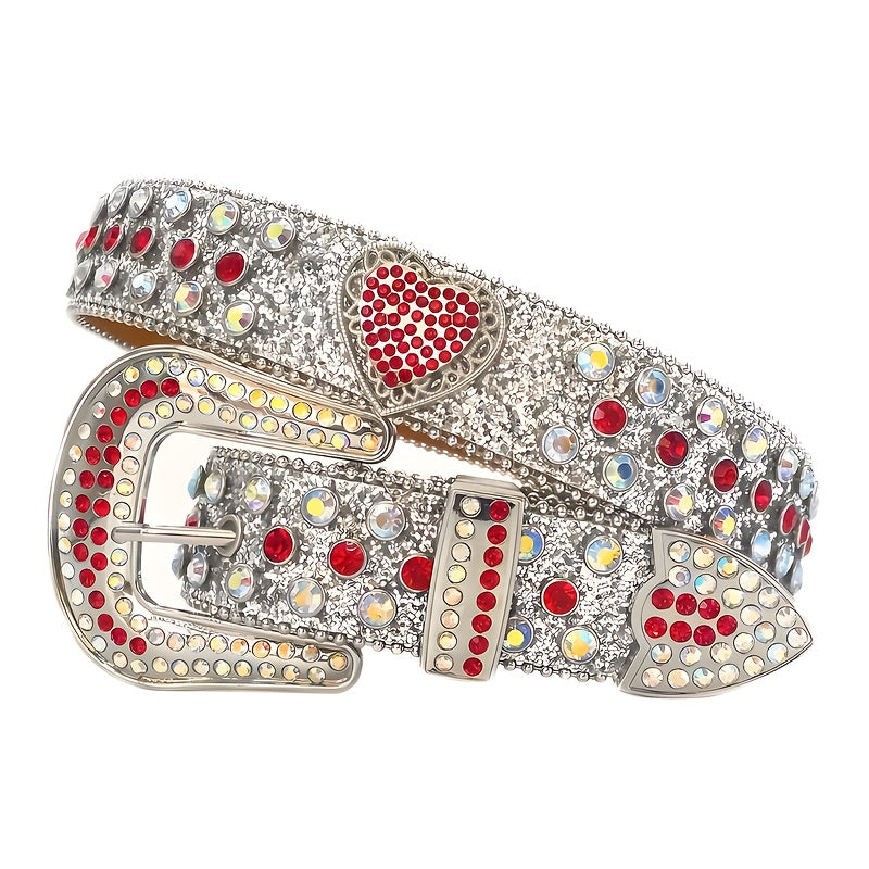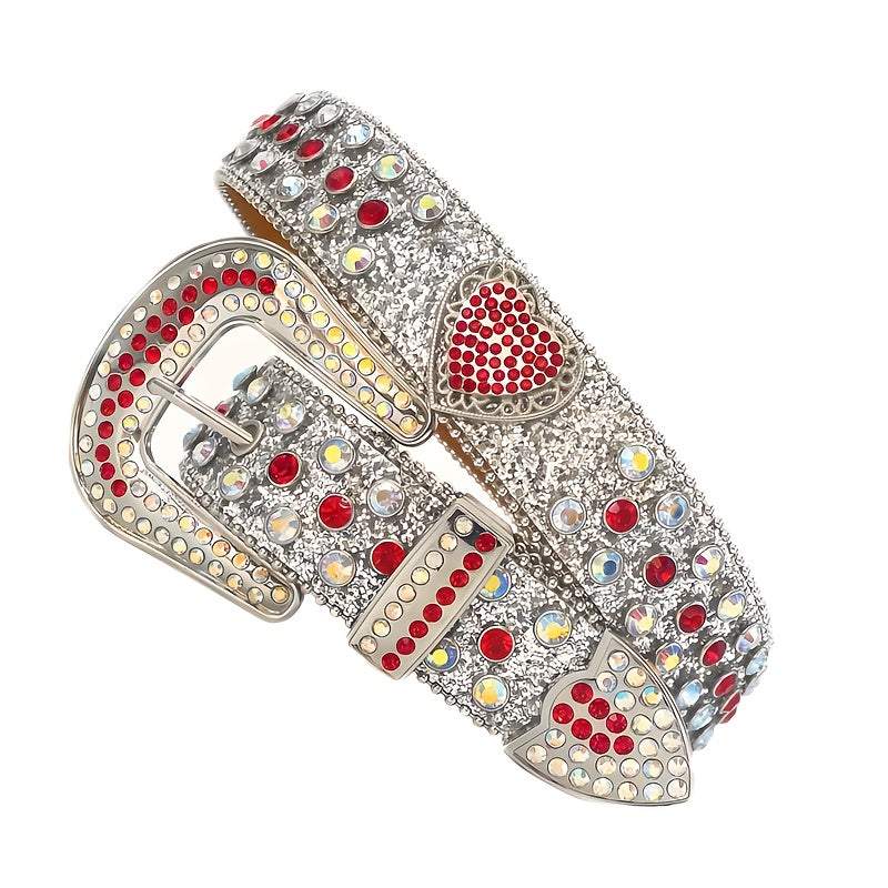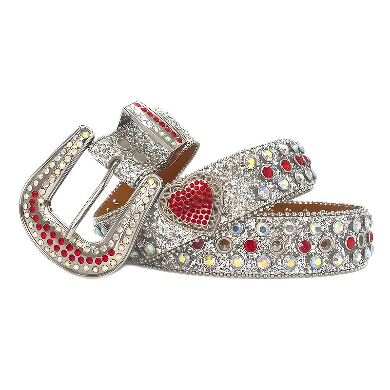 Add some bling to your outfit with this vintage rhinestone belt featuring a carved buckle. Perfect for men and women who love the punk and hip hop style.