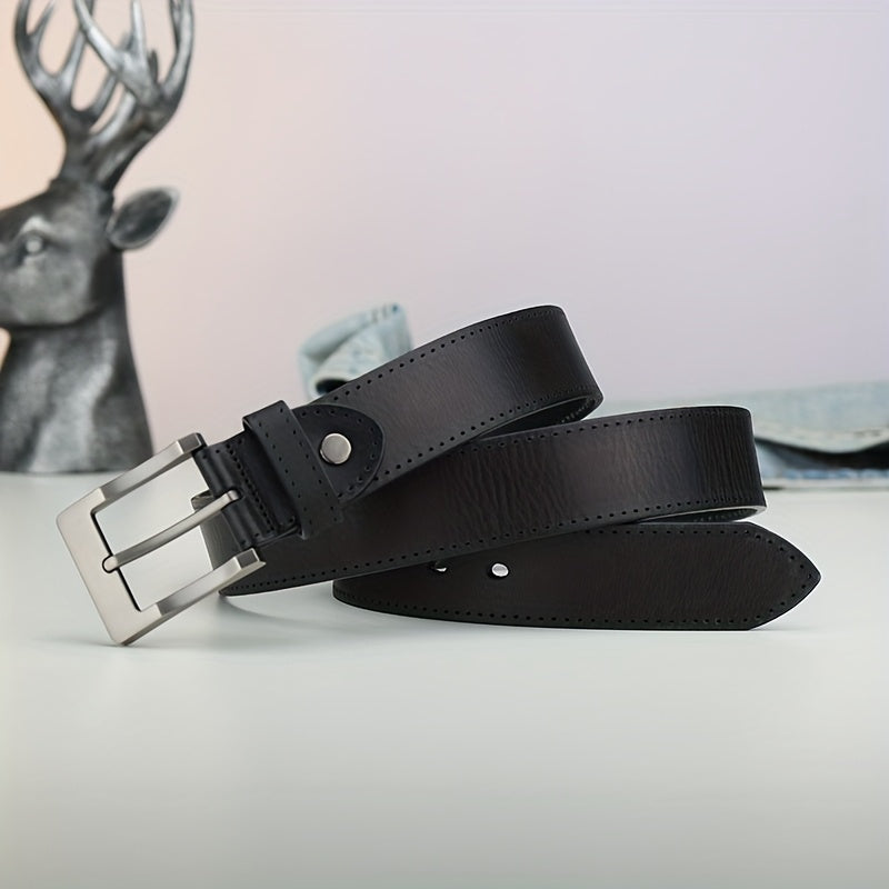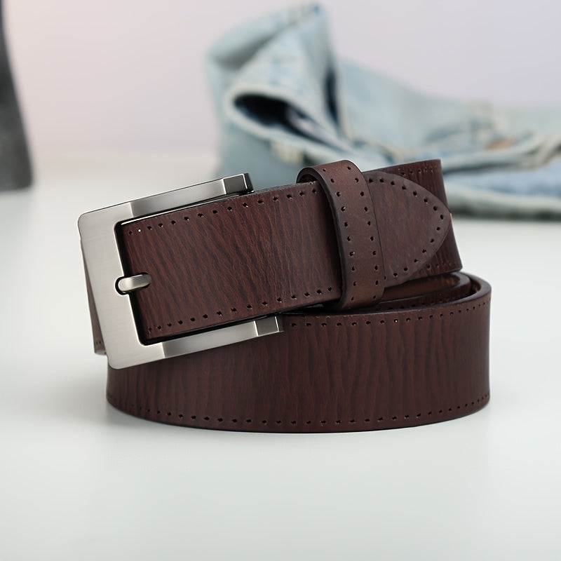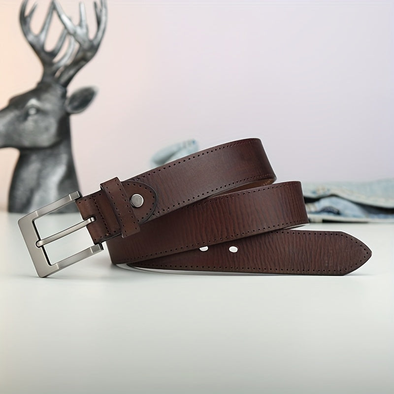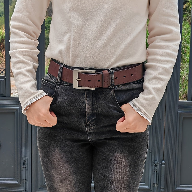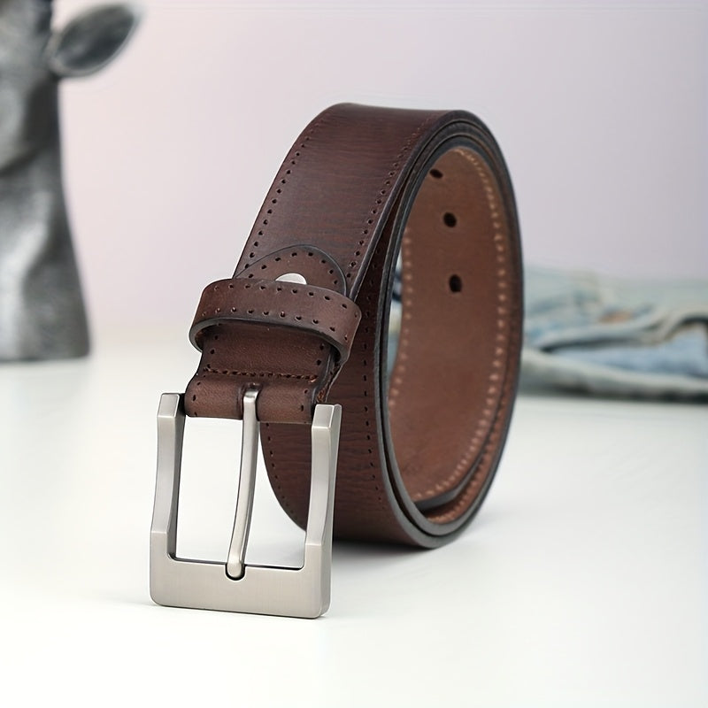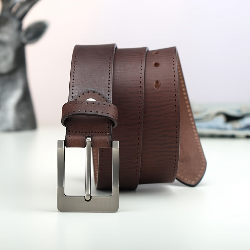 Stylish and durable brown leather belt with a vintage square buckle design, perfect for everyday use.