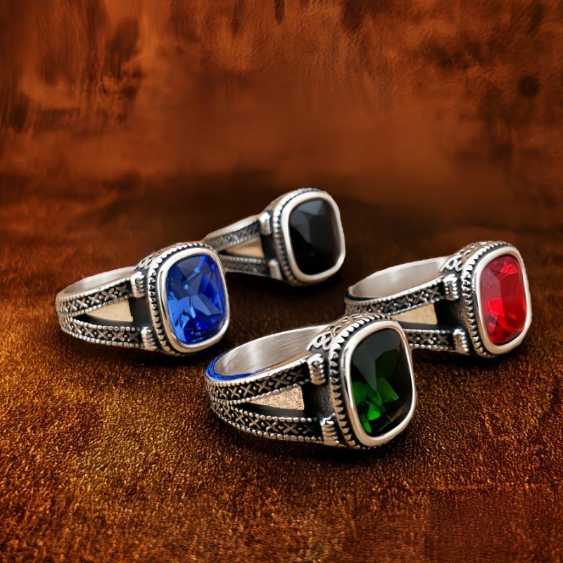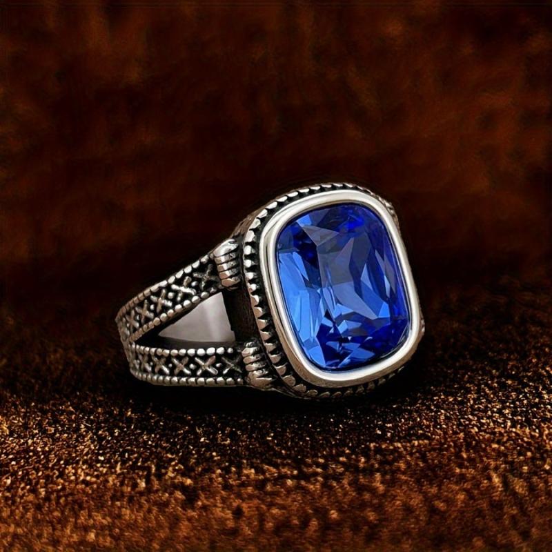 This vintage style unisex ring is made of stainless steel and features synthetic zirconia. Perfect for anniversaries and special occasions.