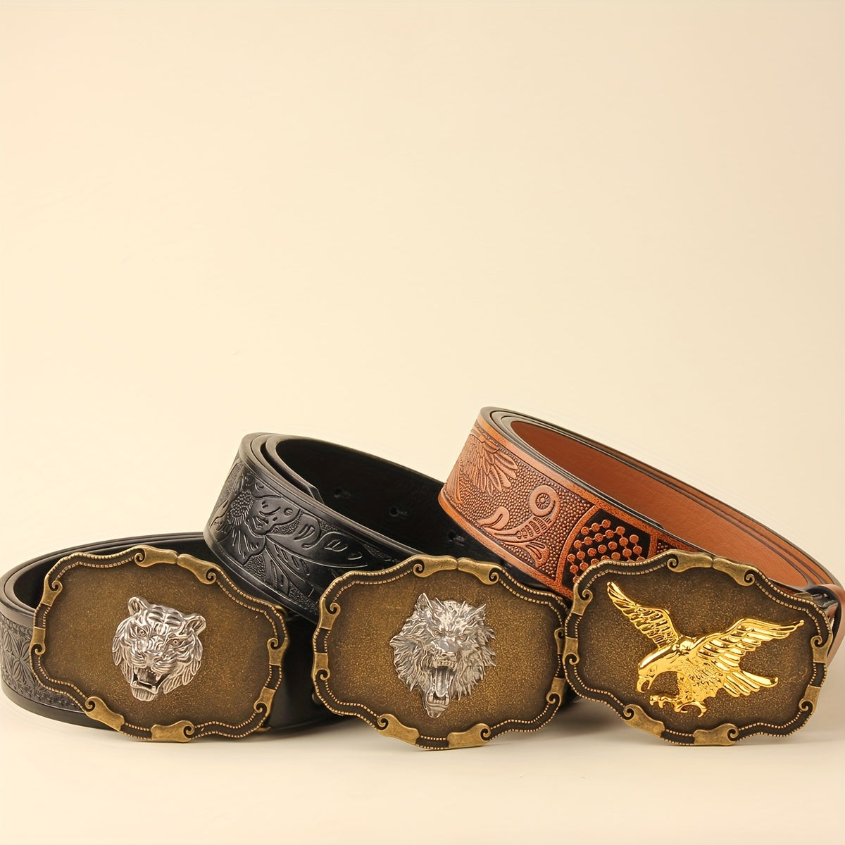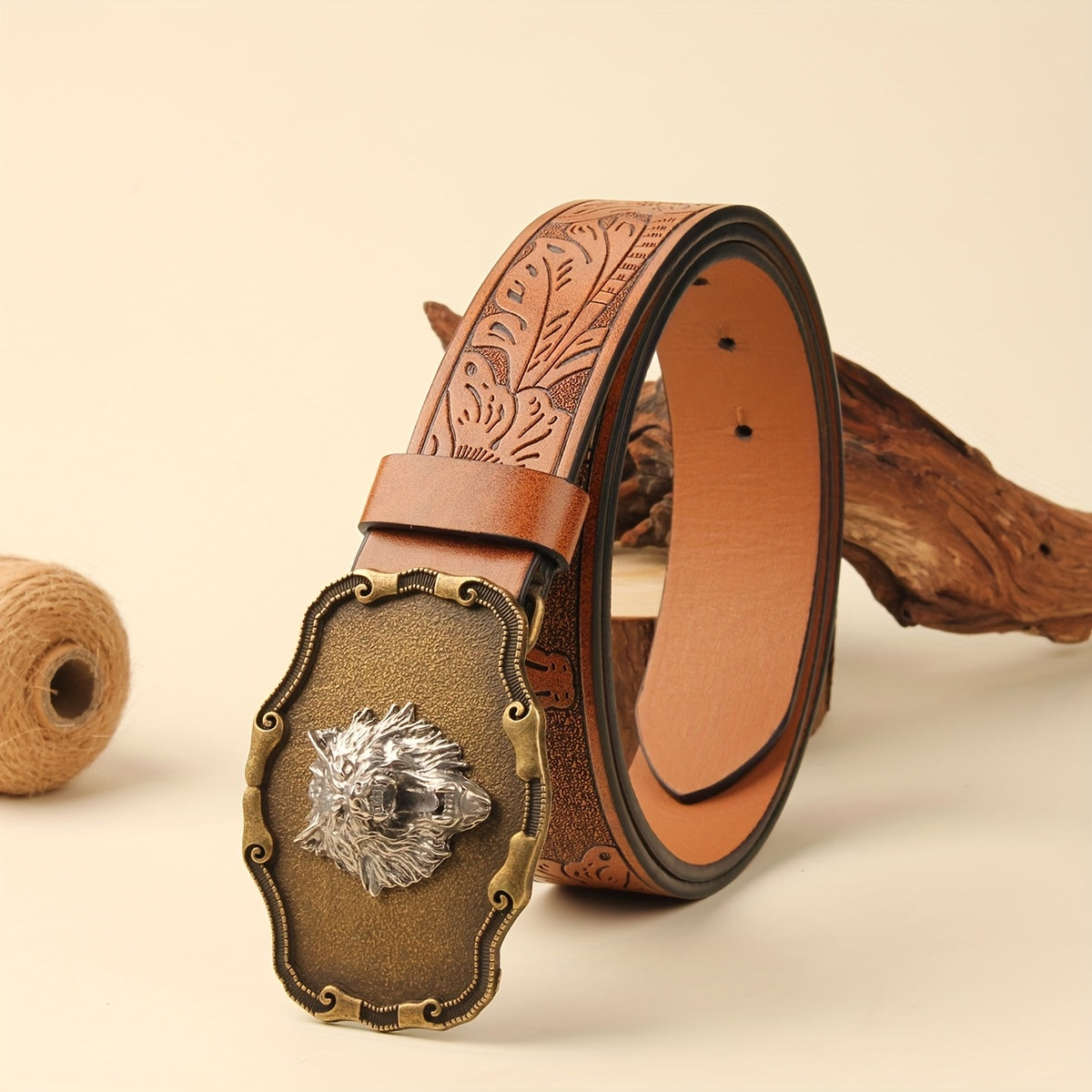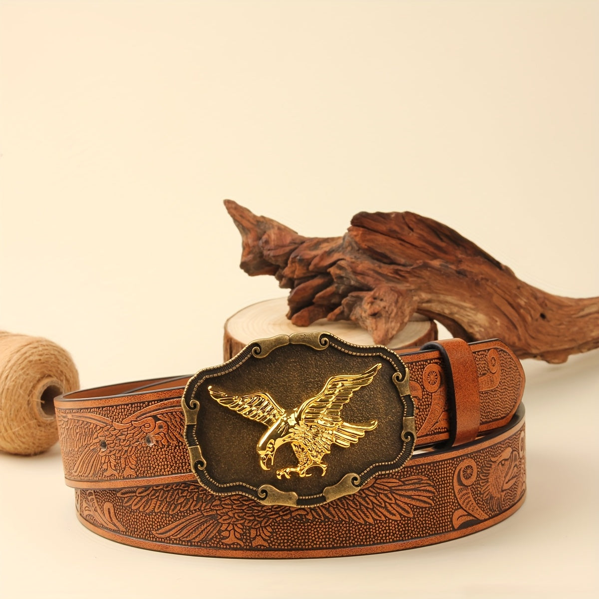 This wide cowboy belt features intricate engraved floral & eagle print on faux leather with a smooth finish. It comes with a pre-drilled design for easy adjustment.