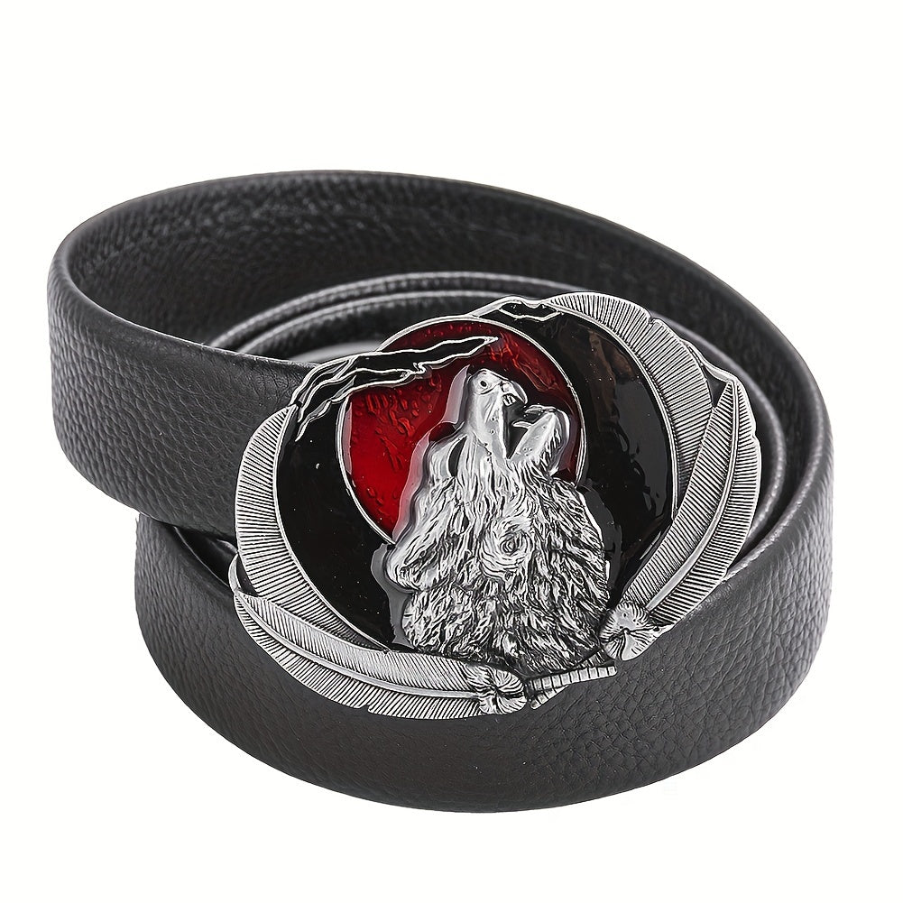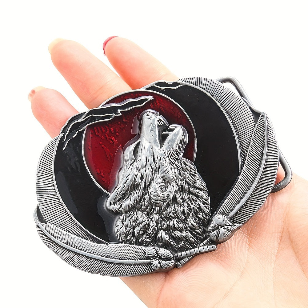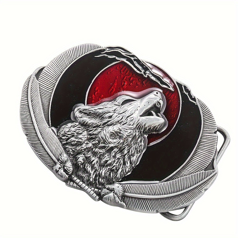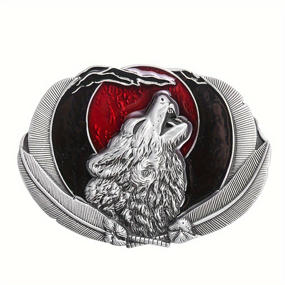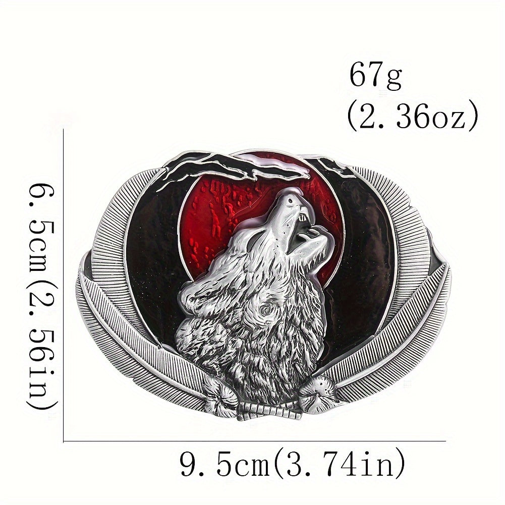 This zinc alloy belt buckle features a hip hop punk style design with a wolf howling at the moon. Perfect for adding a unique touch to your jeans.