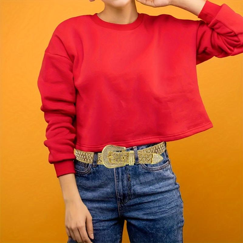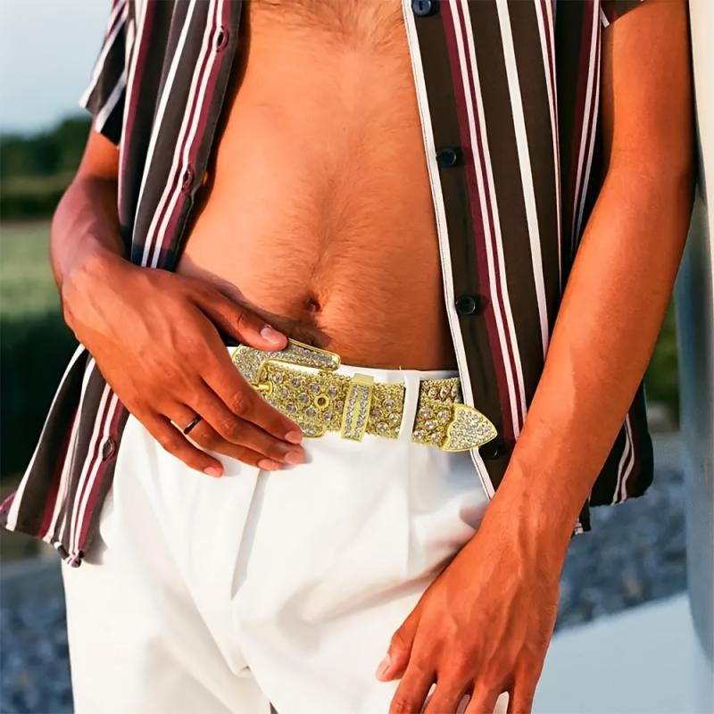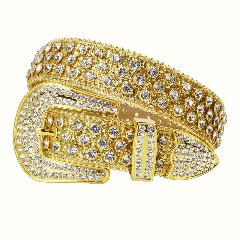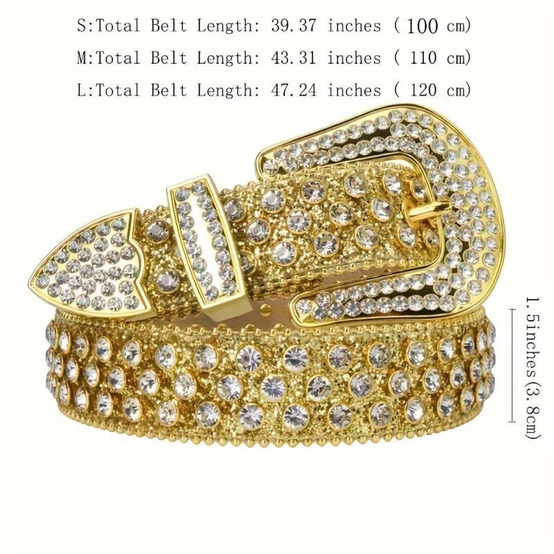 Add some sparkle to your outfit with this stylish Y2K Western Rhinestone Belt. Perfect for pairing with denim jeans or dresses, this belt features crystal studs that will make you stand out.