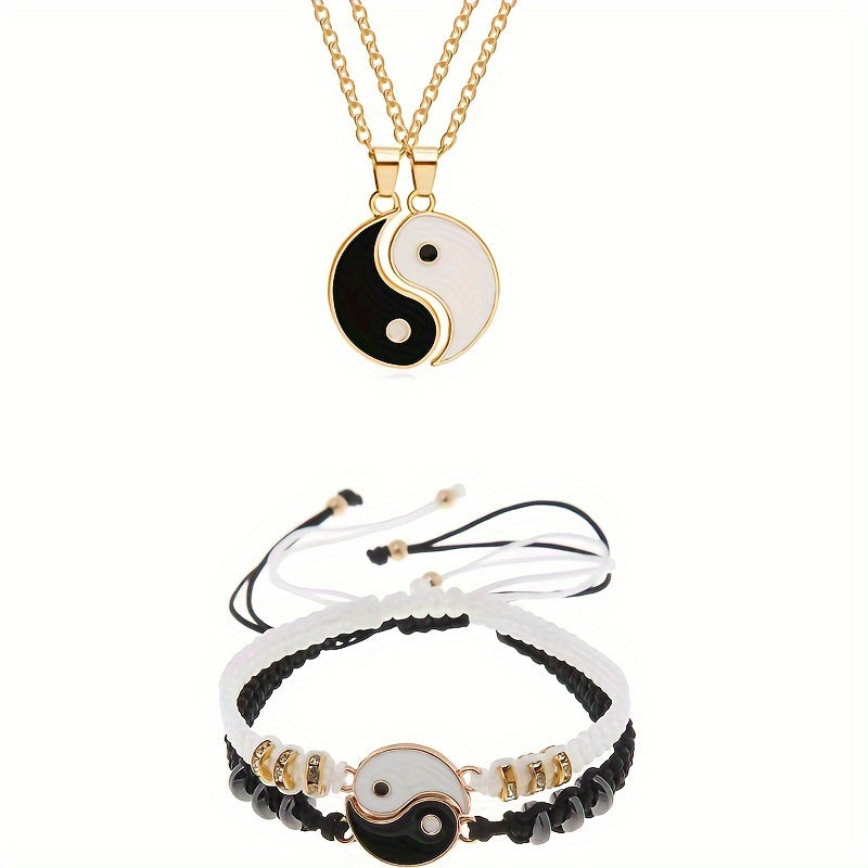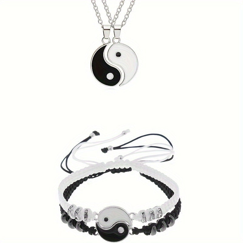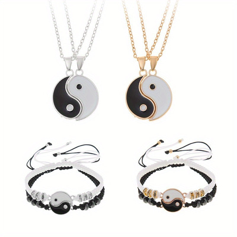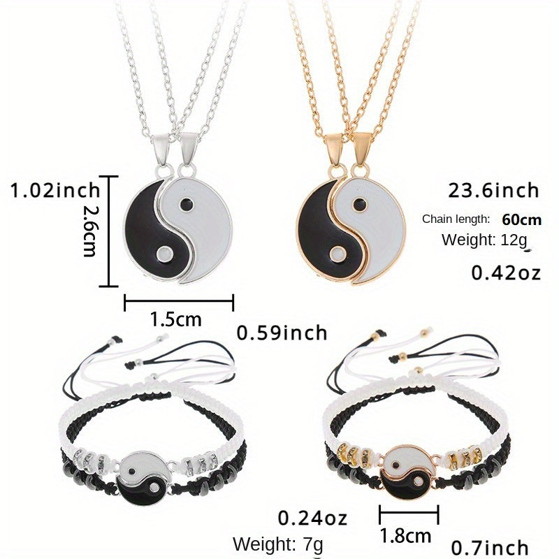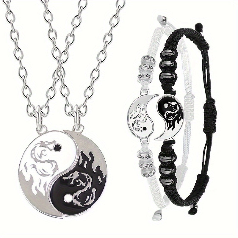 This couple jewelry set includes an alloy Yin Yang pendant necklace and a hand-woven Tai Chi bracelet. Perfect for sharing with your partner.