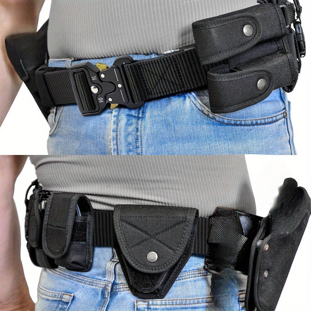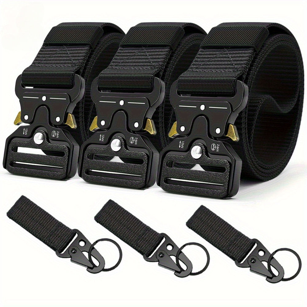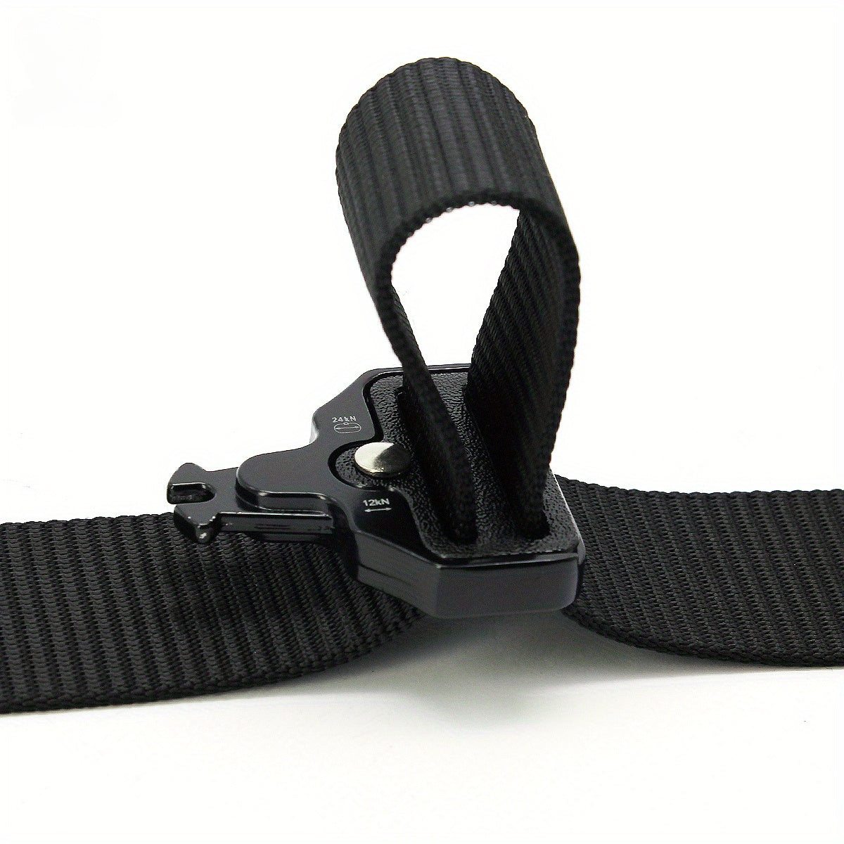 This men's belt is made of heavy-duty canvas material with a quick-release metal buckle, perfect for military or outdoor use.