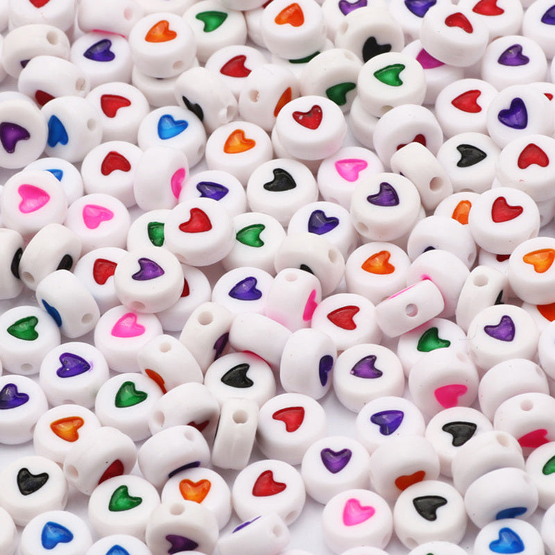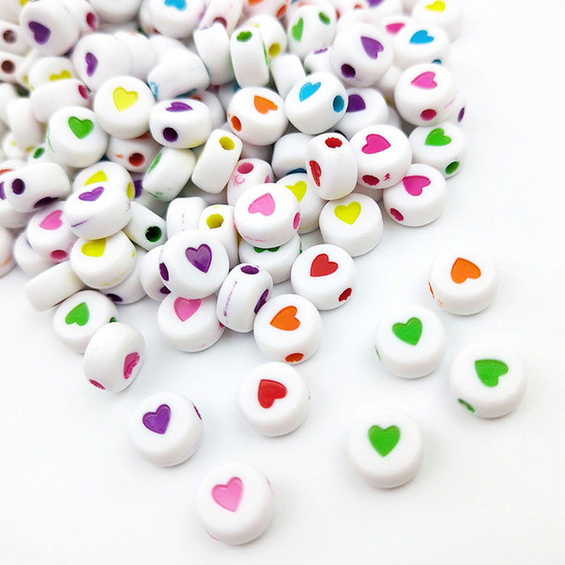 These acrylic beads are perfect for creating your own unique jewelry pieces such as bracelets, necklaces, and earrings. The mixed pack includes round, flat, and heart-shaped beads in various colors. Ideal for DIY projects.