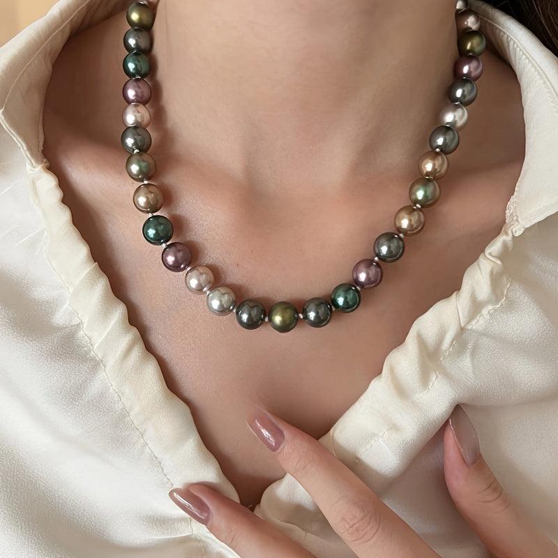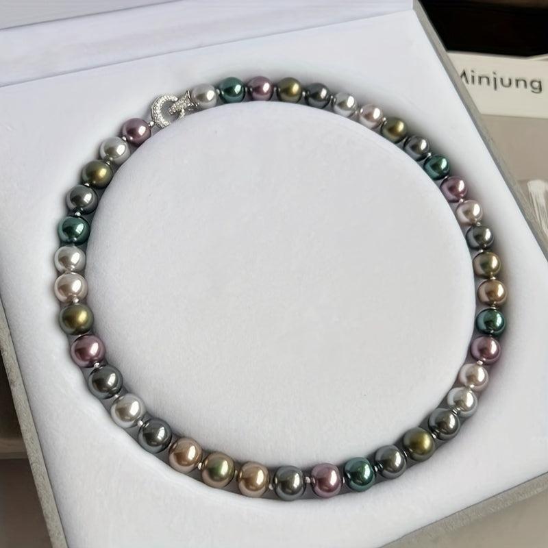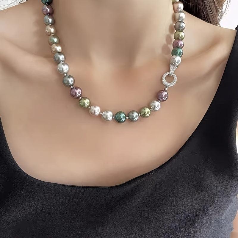 Vintage and sexy, this necklace features 10mm mixed shell pearls that are perfect for daily wear or as a gift. Suitable for all seasons, especially spring.