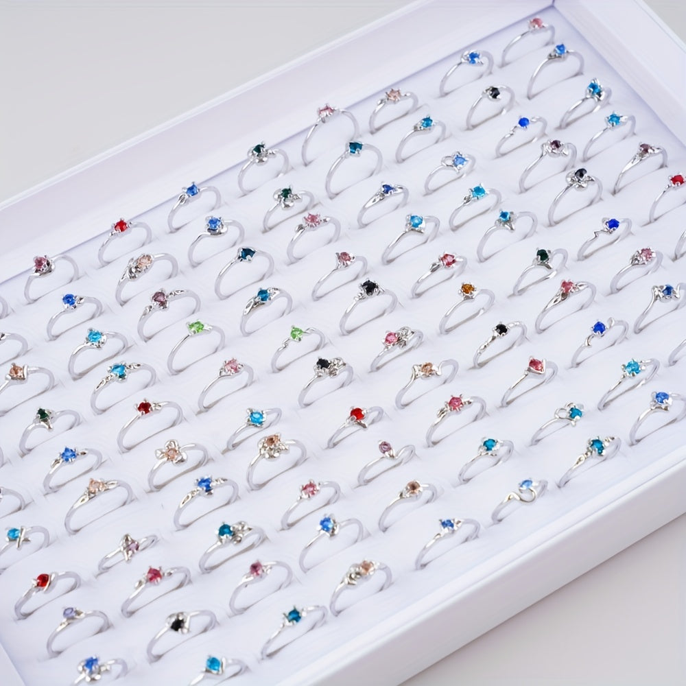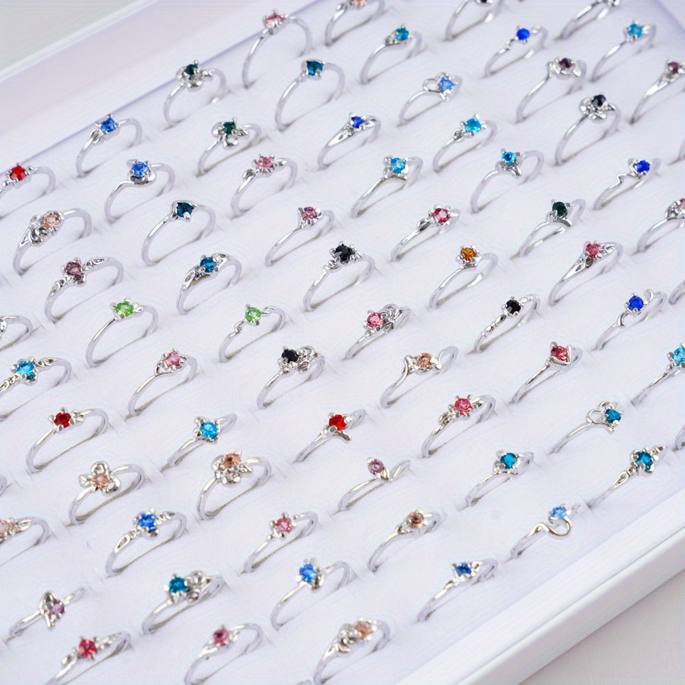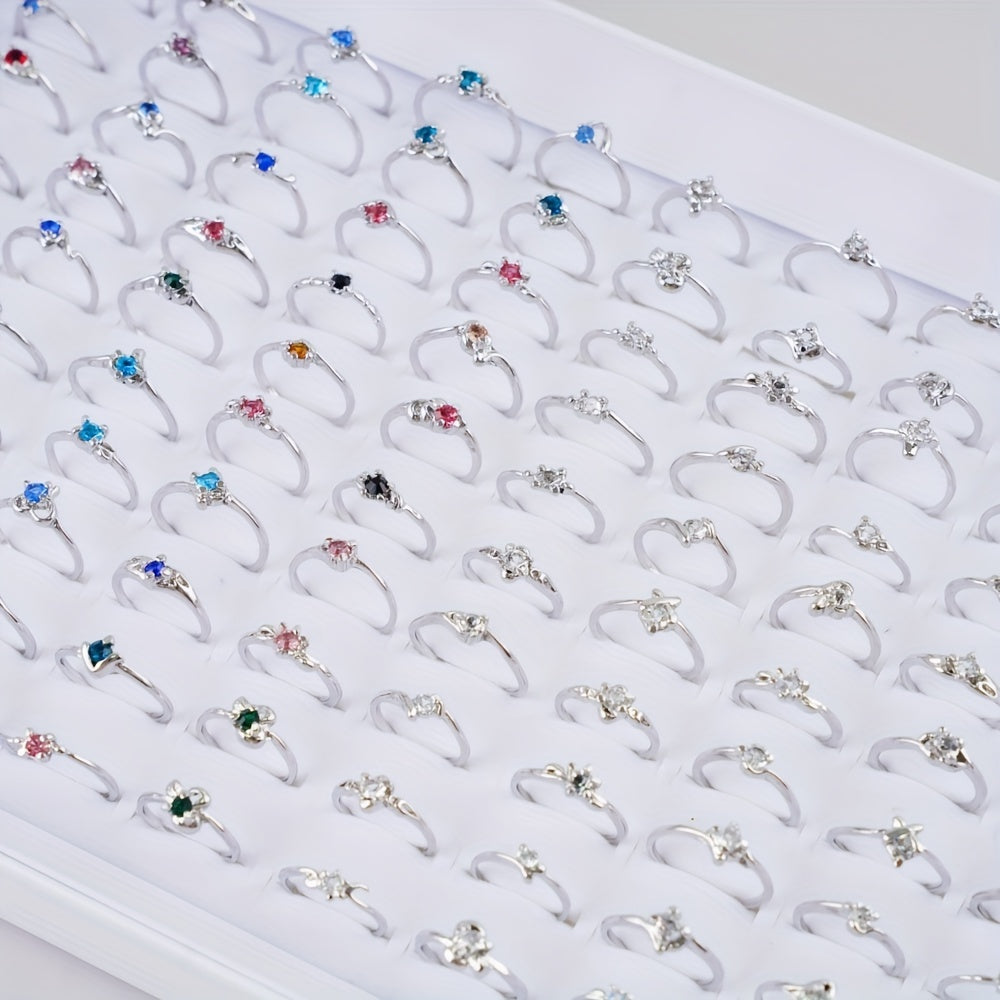 Add a touch of sparkle to your look with these thin rings featuring colorful rhinestone inlays. Perfect for parties and anniversaries.