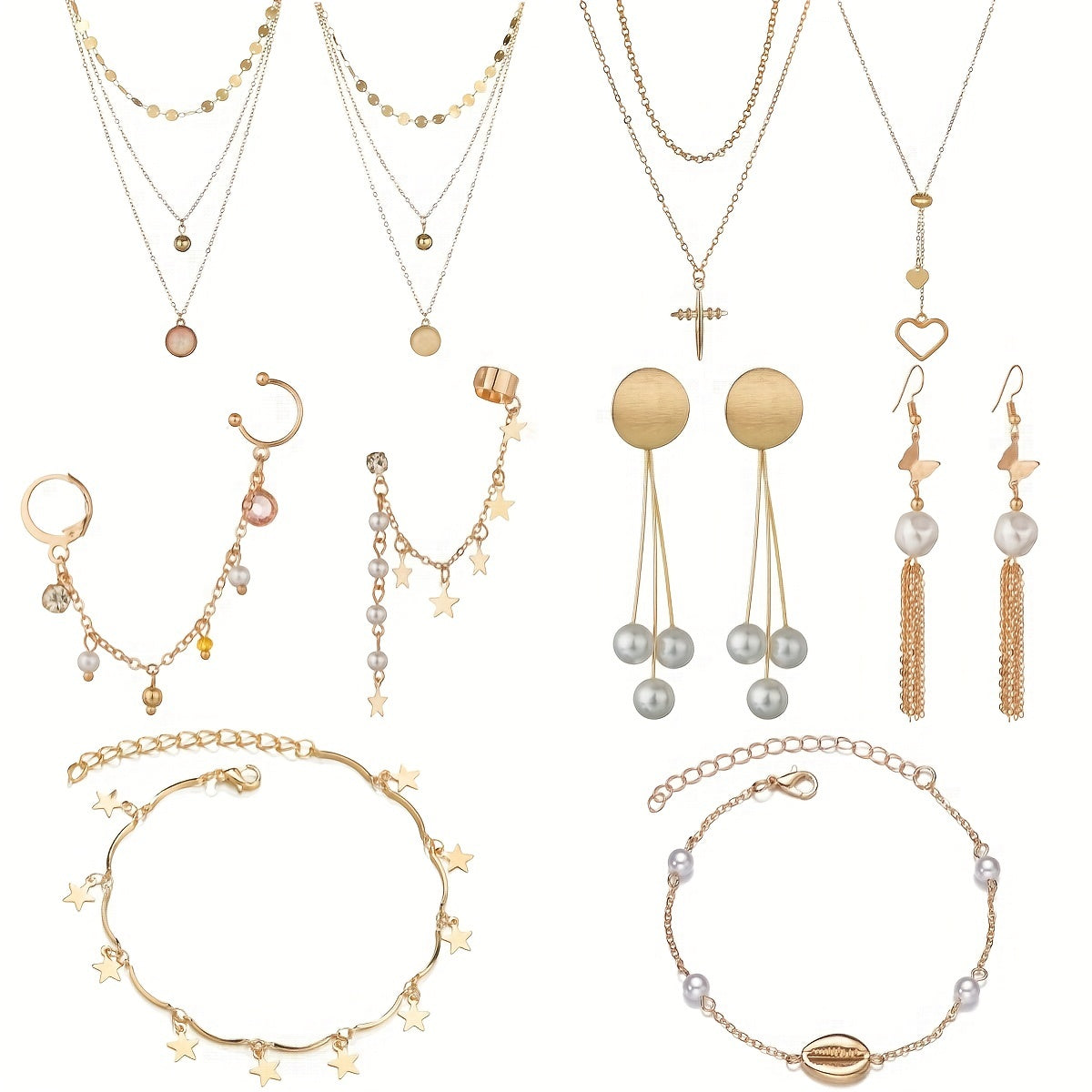 Elevate your summer vacation look with this 10-piece jewelry set featuring a mix of cross and heart shapes. Perfect for adding a stylish touch to your outfits.