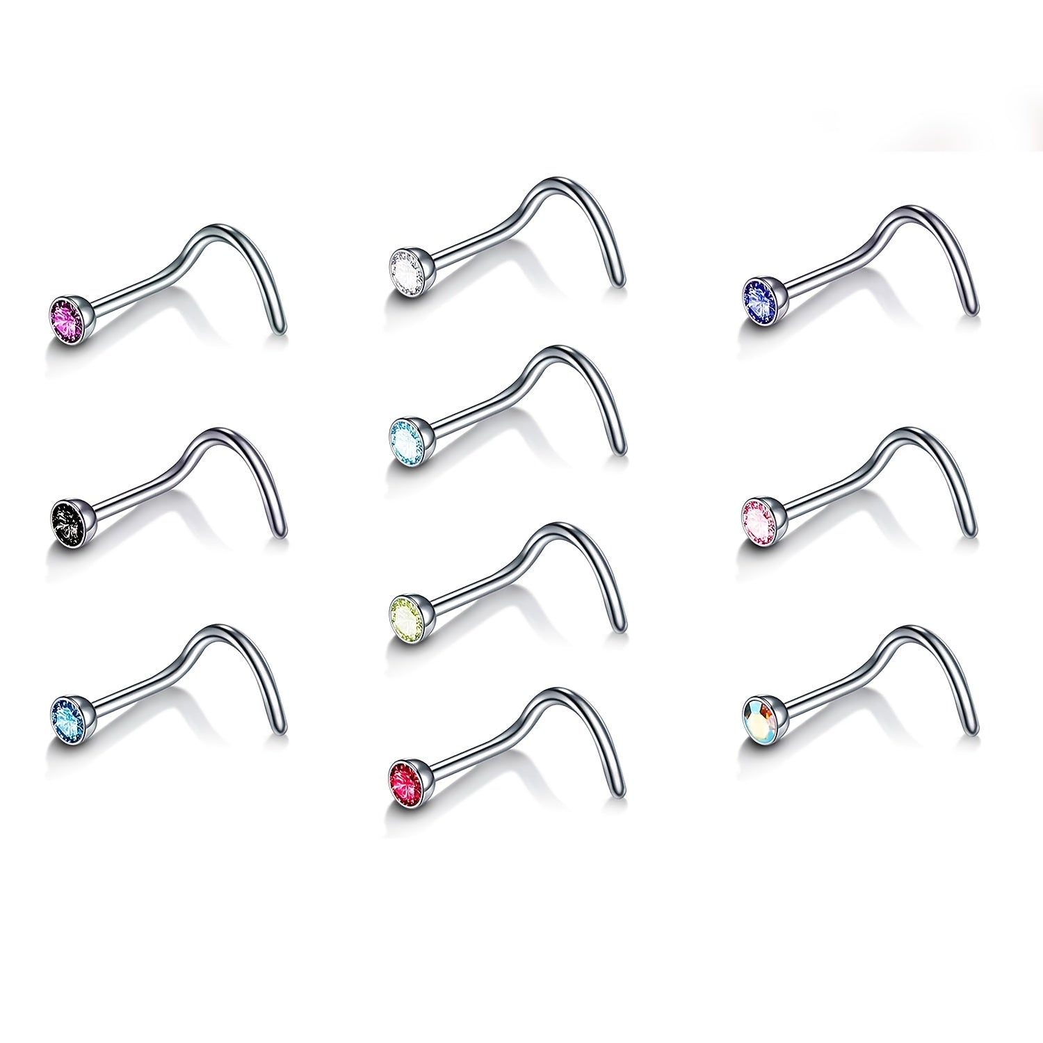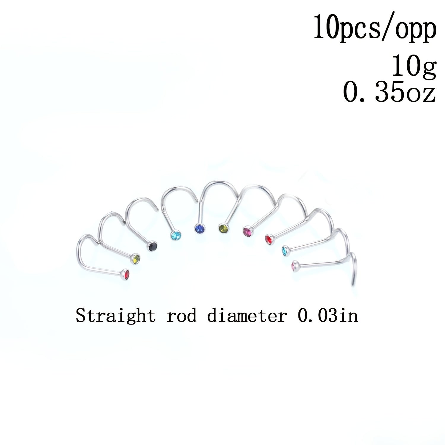 10pcs Stainless Steel Nose Nails Multicolor Style Piercing Jewelry Nose Ring