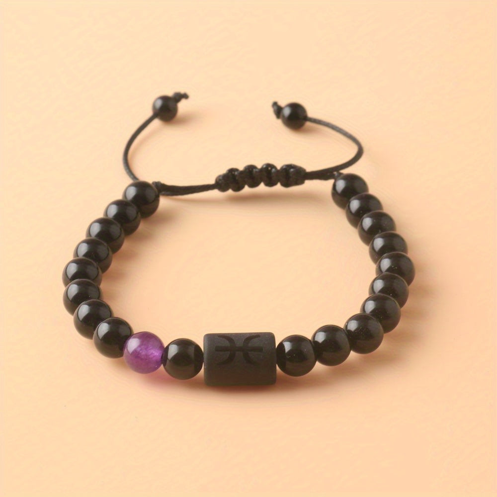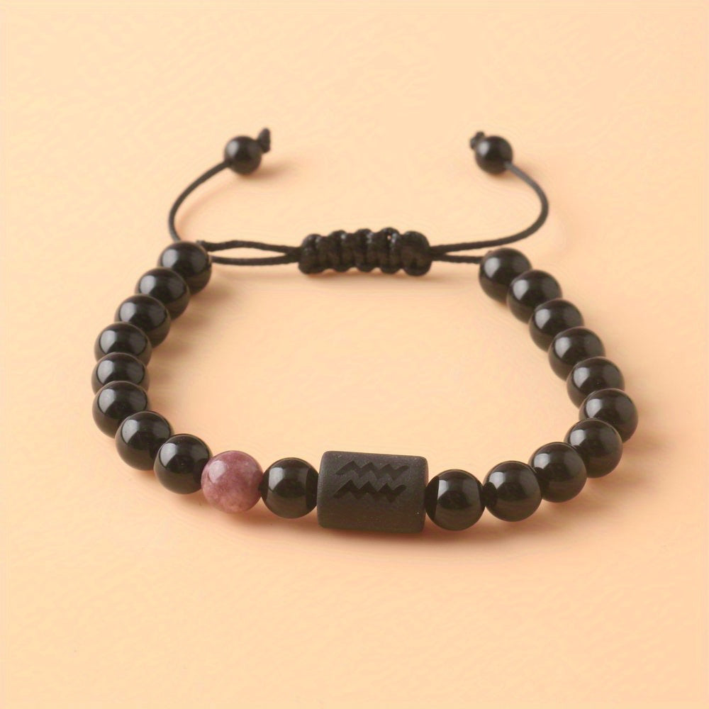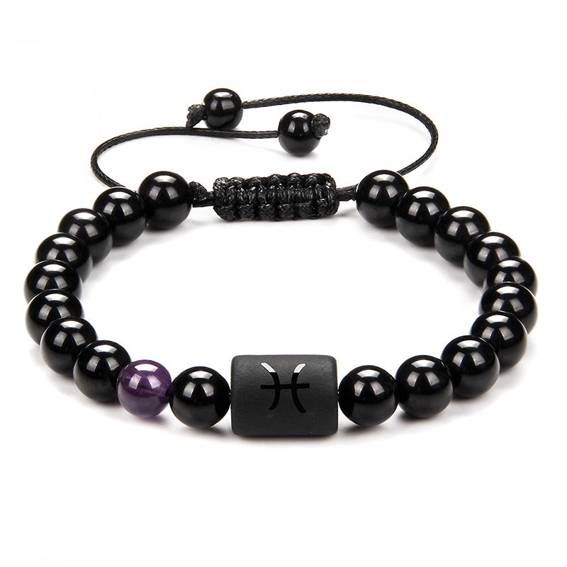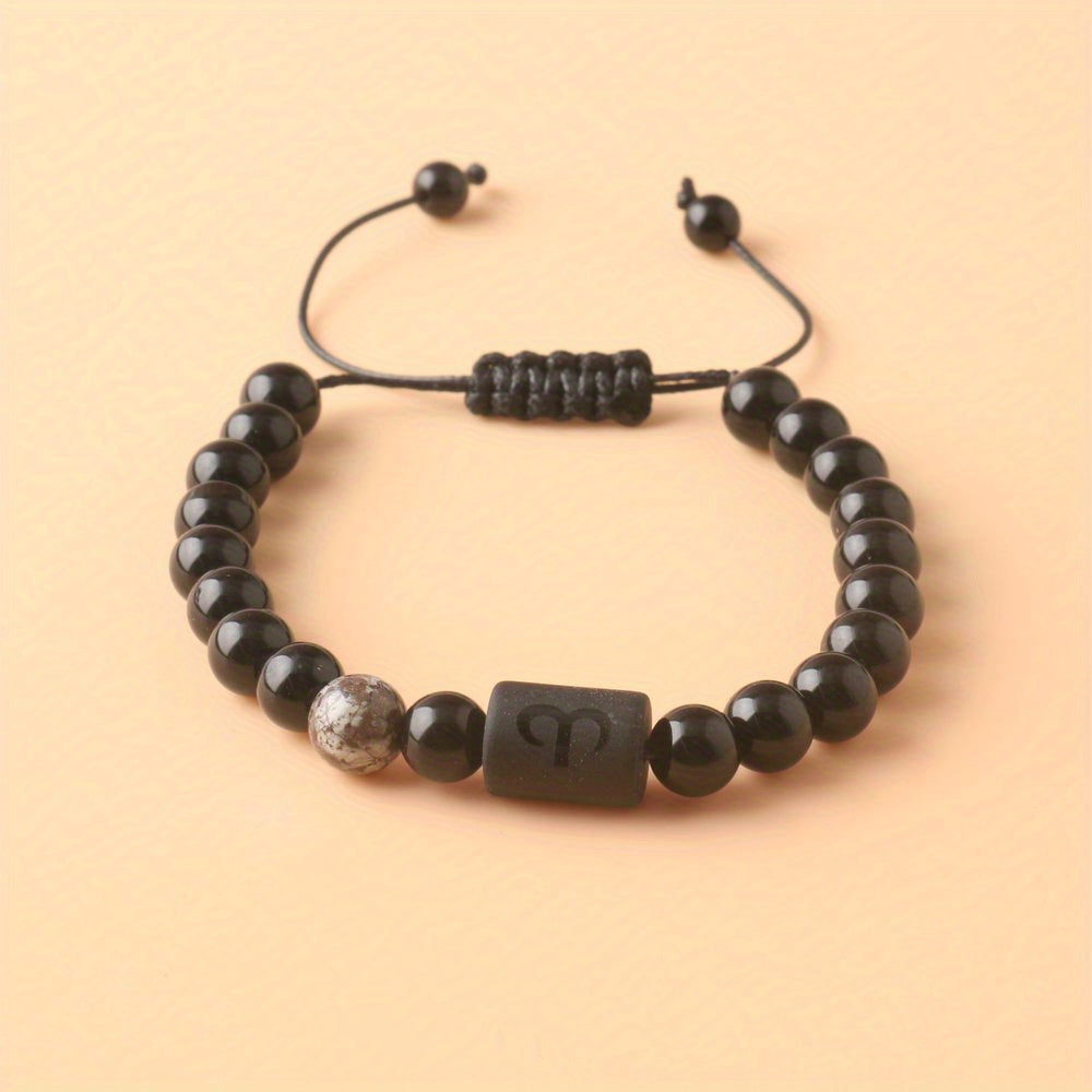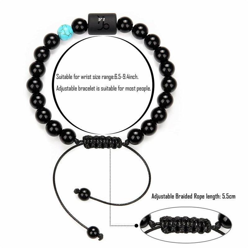 Braided bracelet made of natural stone reiki beads, perfect for couples. Each bracelet features the charm of the respective zodiac sign.