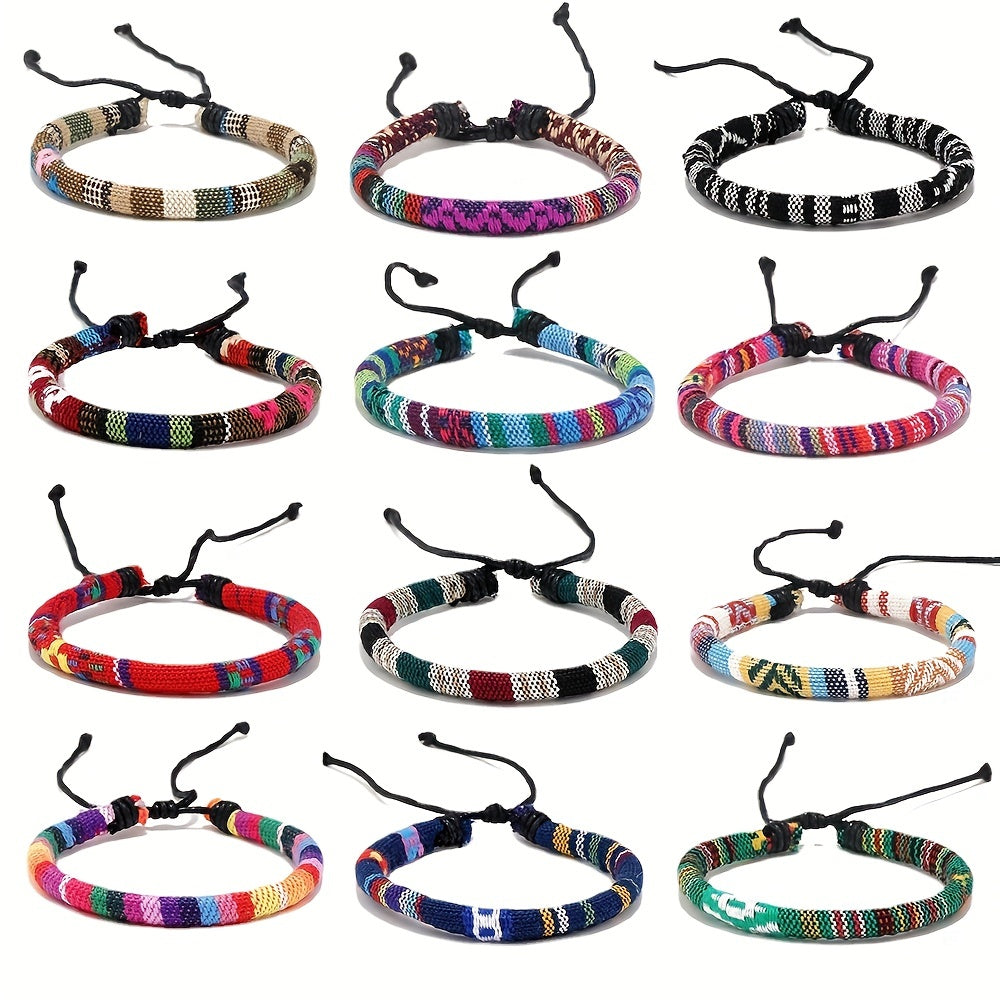 This set includes 12 boho-style multicolor bracelets that are perfect for women, girls, men, and boys. These adjustable woven friendship bracelets are ideal for adding a touch of style to your outfit.