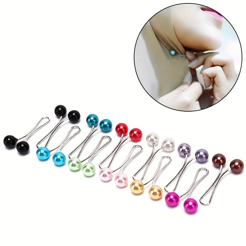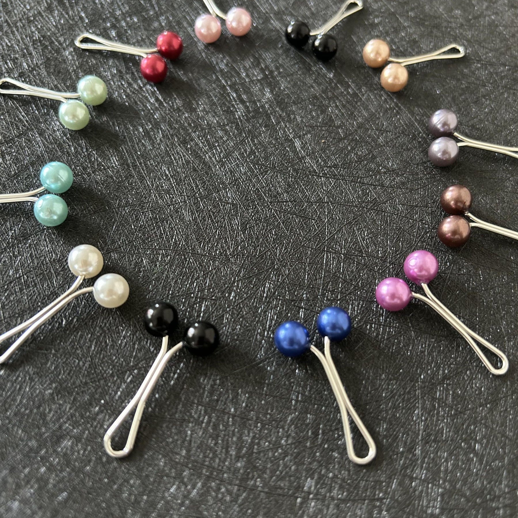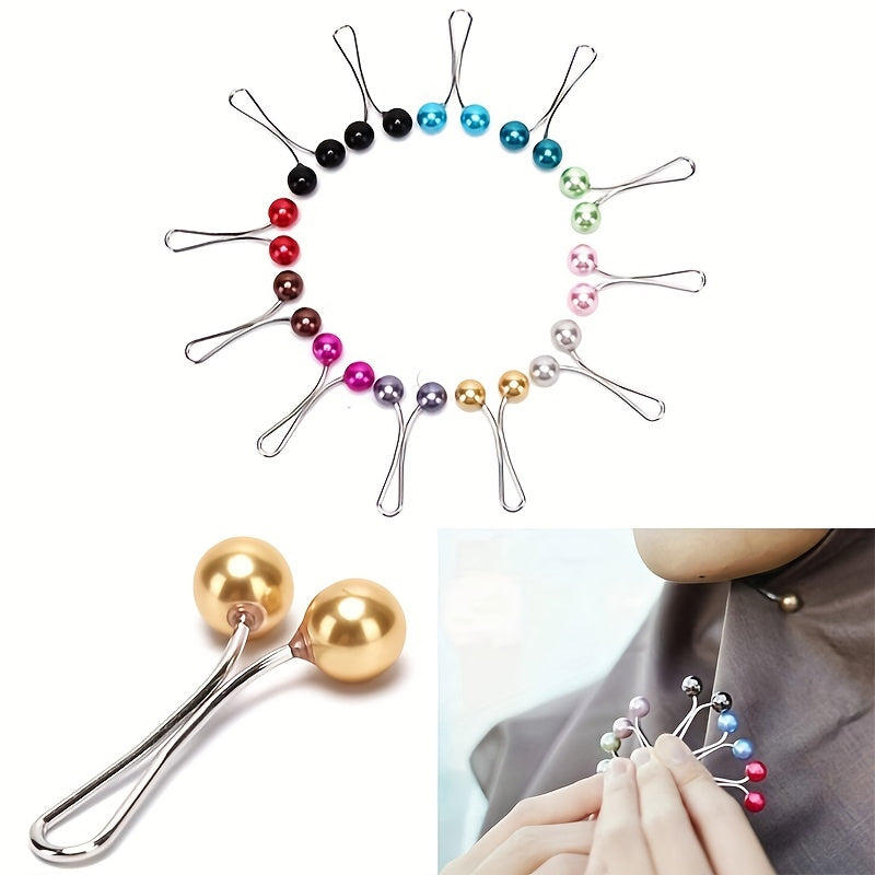 Elevate your style with this set of 12 faux pearls scarf clips to add a touch of elegance to your bandana or scarf. Each clip is designed to secure your scarf in place while providing a colorful and charming look.