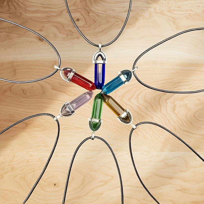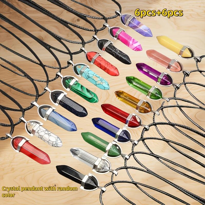 12pcs Set Boho Style Crystal Pendant Necklaces Hexagonal Teardrop Beads