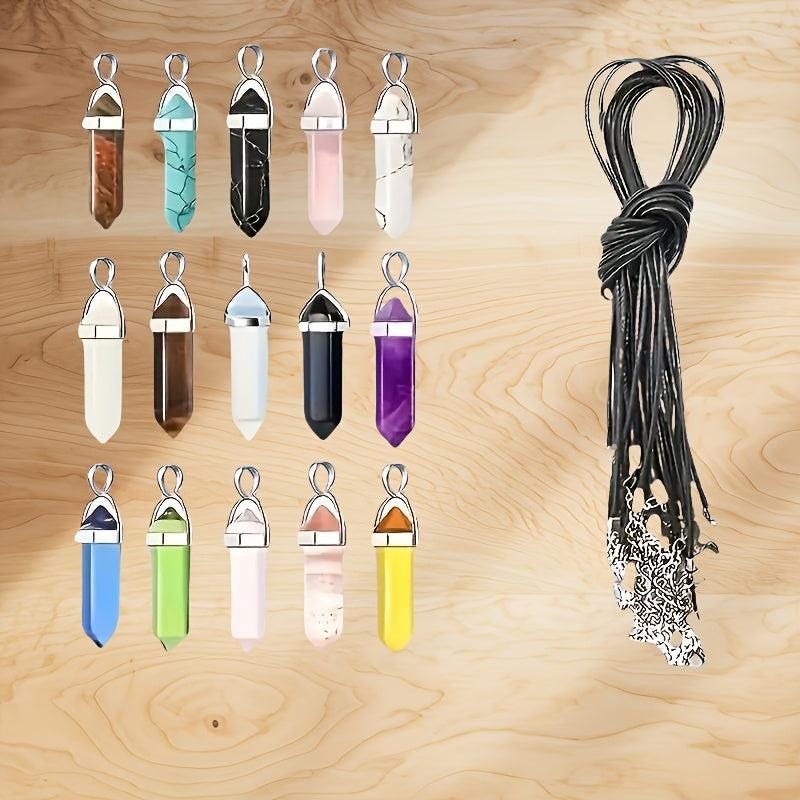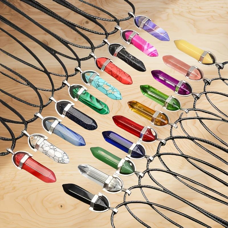 This set includes 12 boho style pendant necklaces with synthetic crystal hexagonal and teardrop beads on cords. Ideal for daily wear and parties, they make a perfect Valentine's gift.