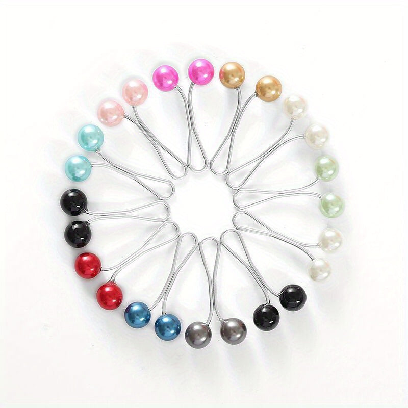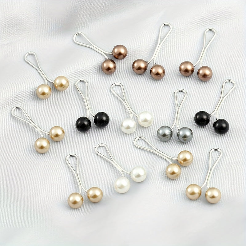 Keep your scarves in place stylishly with this set of 12 U shaped scarf clips featuring faux pearls. Prevents scarves from slipping off and adds a touch of elegance to your outfit.
