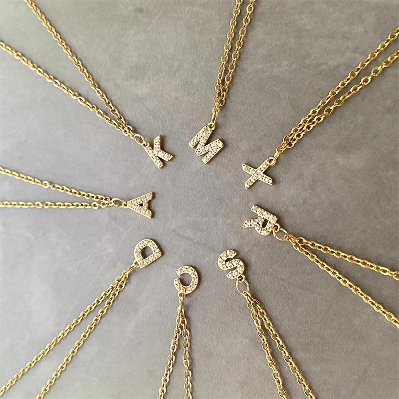 This stunning necklace features a zirconia-encrusted letter pendant on a durable stainless steel chain. Perfect for daily wear or special occasions.