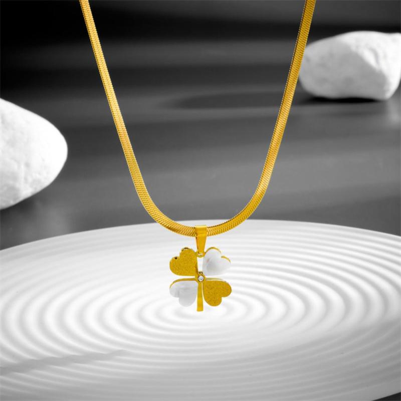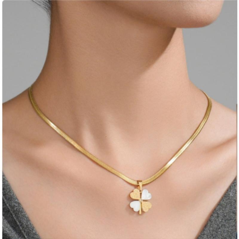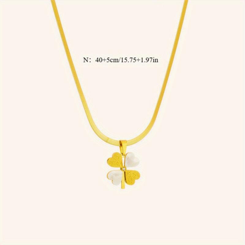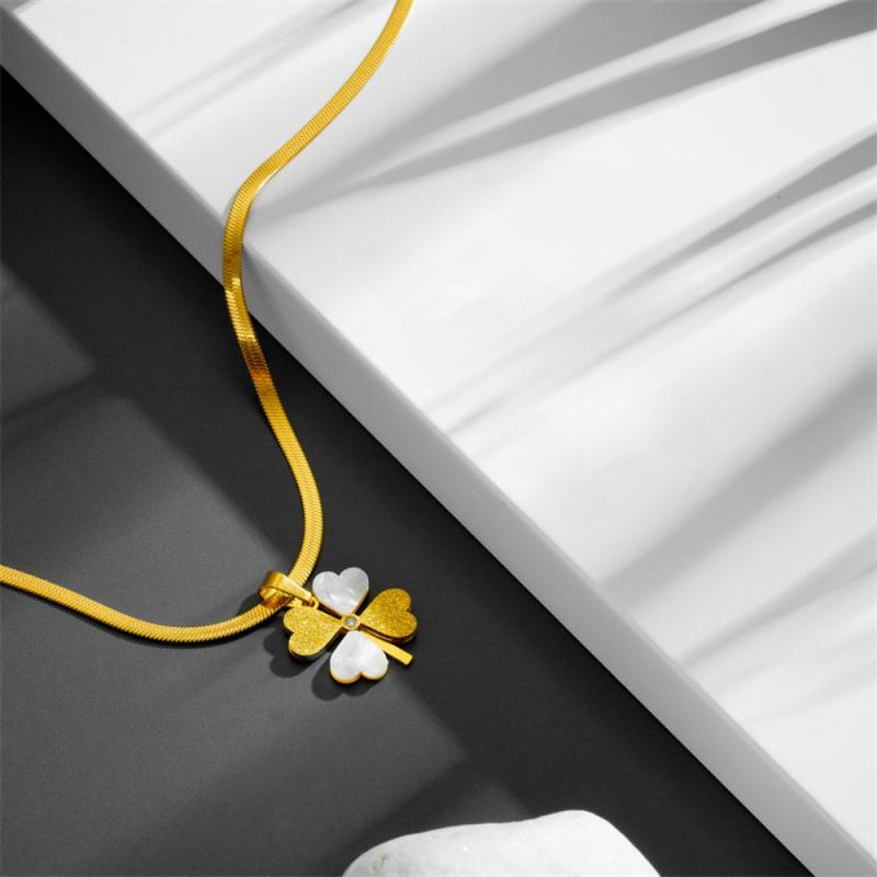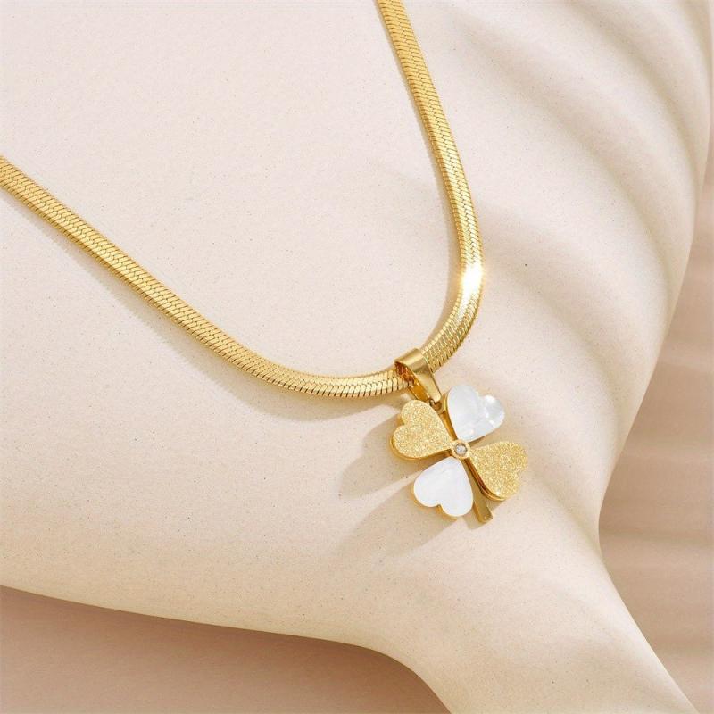 This stunning necklace features a four-leaf clover pendant plated in 18K gold, adorned with shell and crystal accents. It is made from 316L stainless steel, making it perfect for daily wear and gifting.