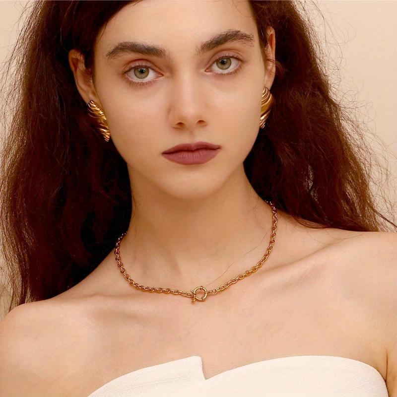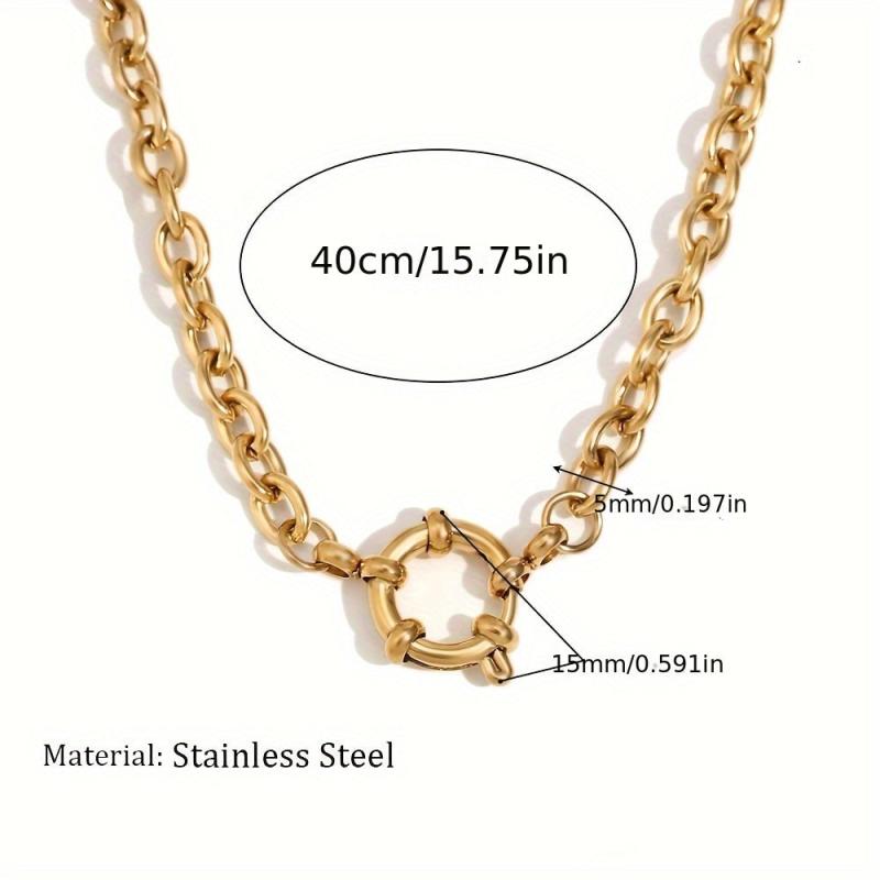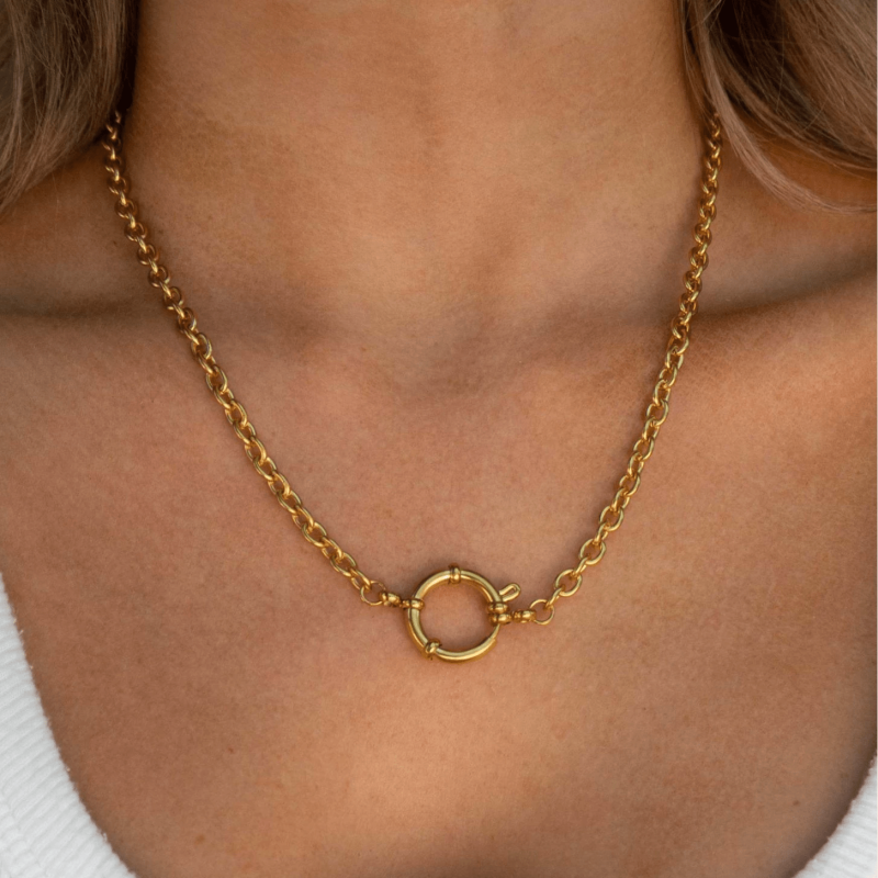 Elegant gold plated stainless steel necklace with round pendant. Bohemian vintage design with a spring ring closure. Ideal for gatherings with friends.