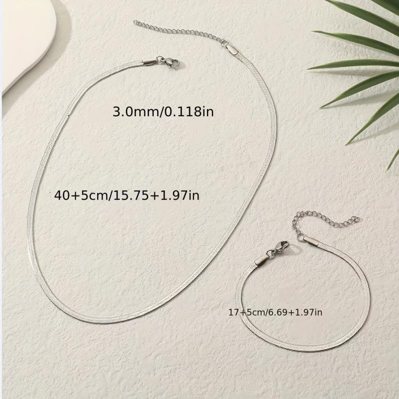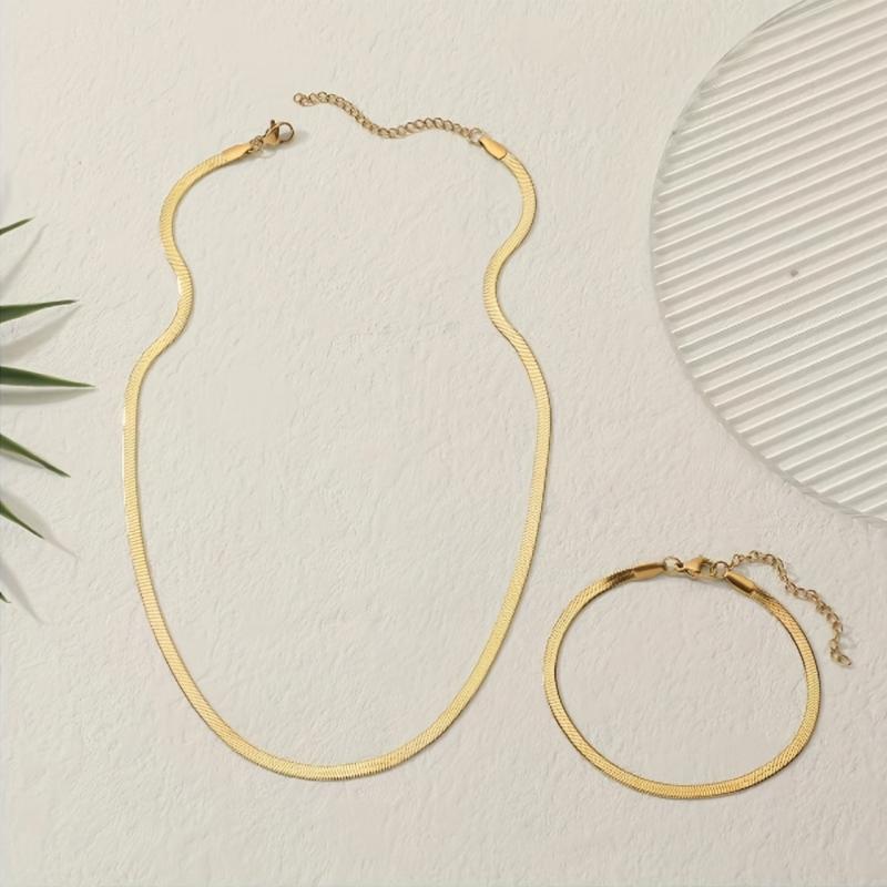 This stunning jewelry set features an elegant 18K gold plated 304 stainless steel necklace and bracelet combo. Perfect for daily wear all season long.