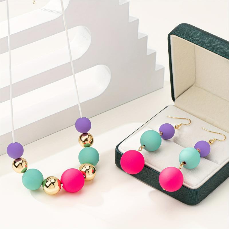This fashionable candy necklace and earrings set features a versatile design suitable for daily and vacation wear. Made with high-quality materials and a trendy street style.
