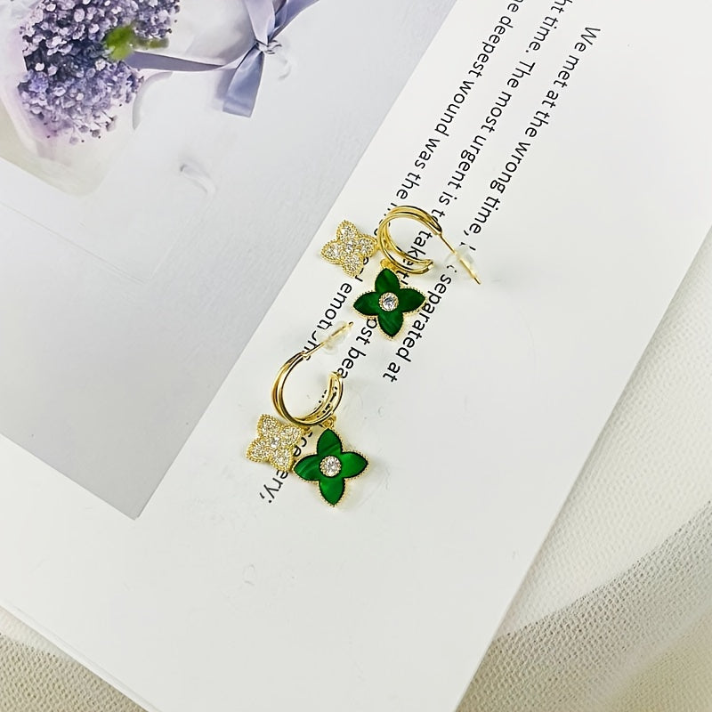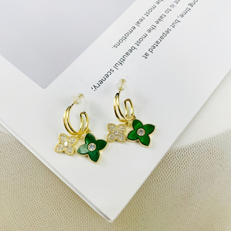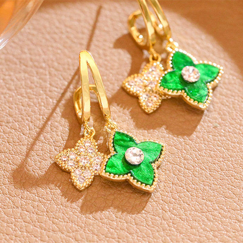 18K Plated 4 Leaf Clover Earrings Women Holiday Party Decor