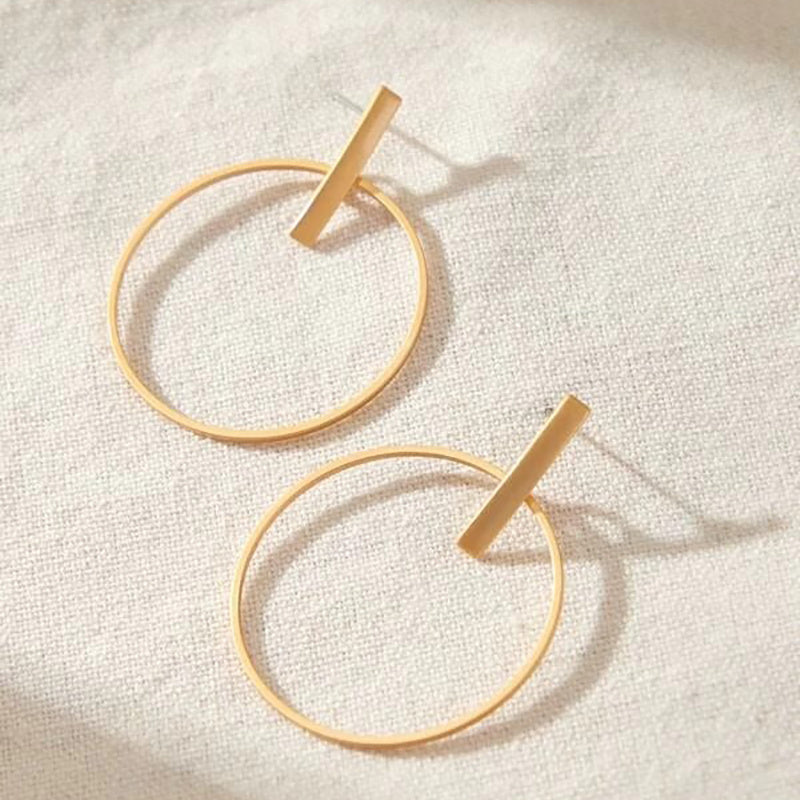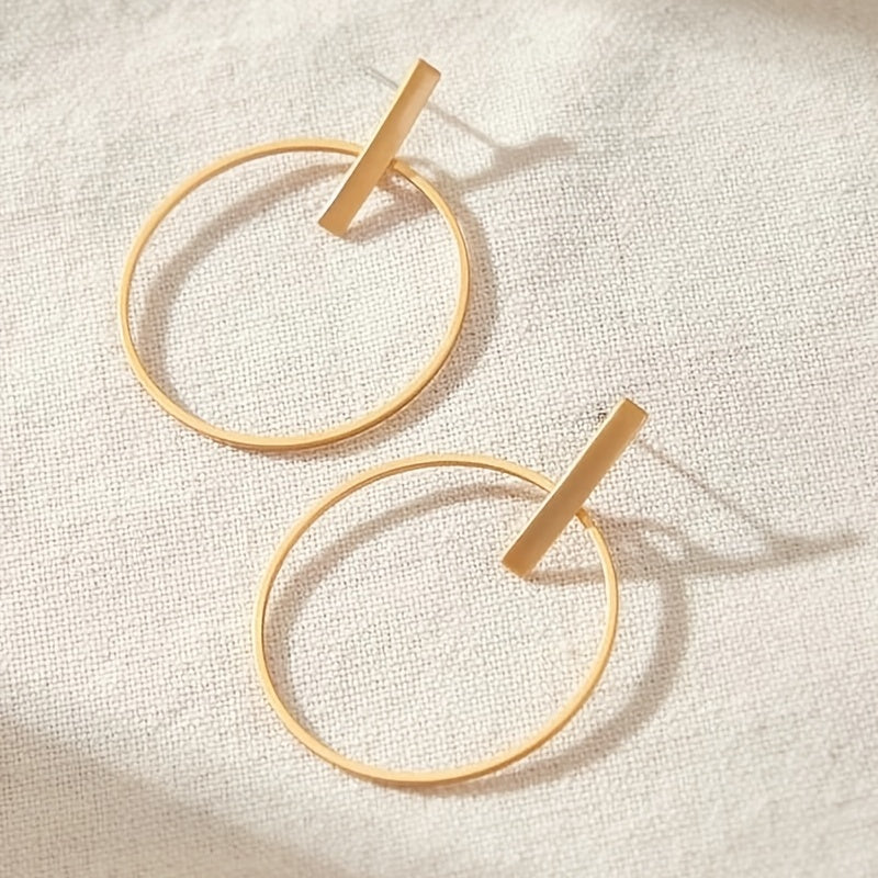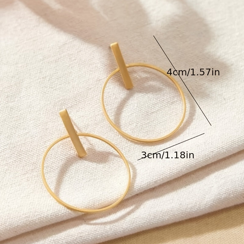 Add elegance to your outfit with these stylish 18K plated geometric circle drop earrings. Perfect for everyday wear or special occasions.
