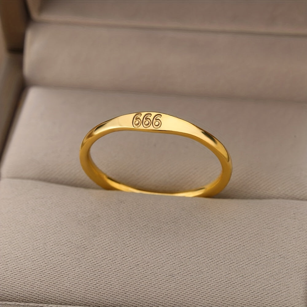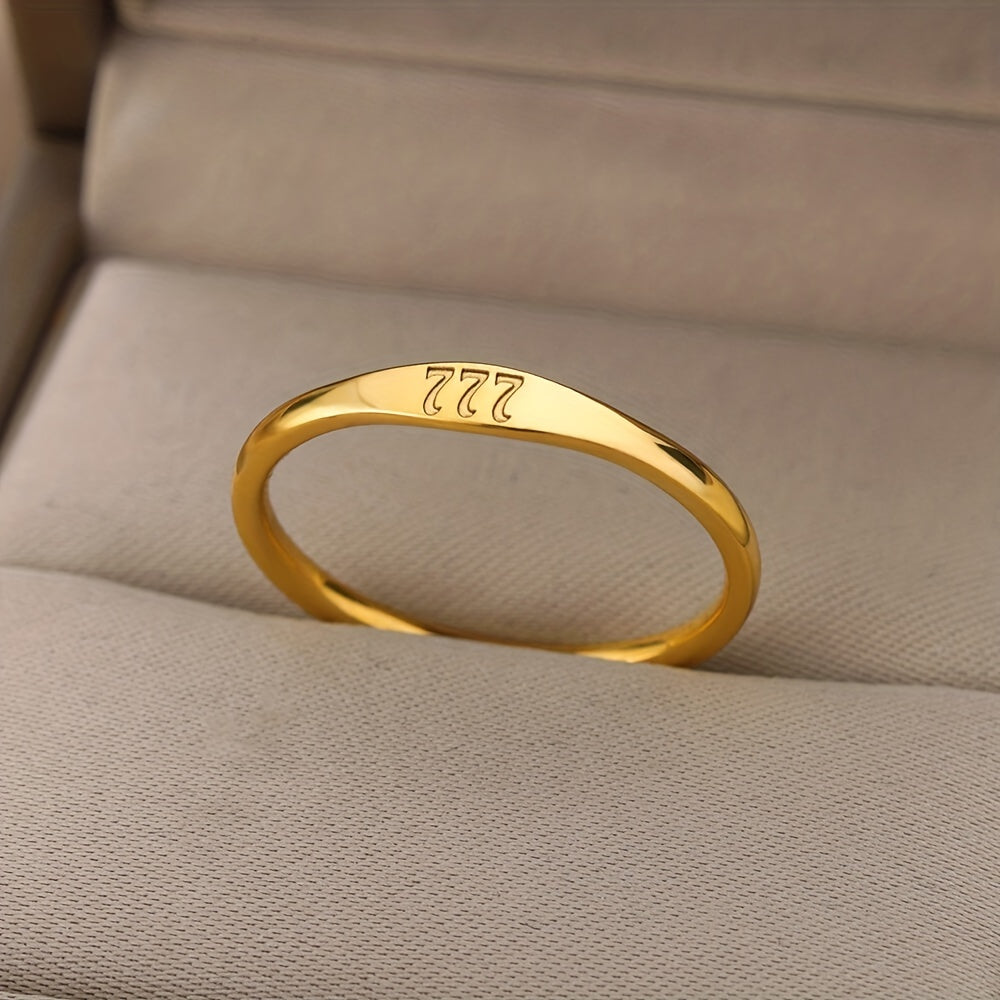This 18k plated golden ring features flat surface letter carving, making it suitable for daily decoration and wear.