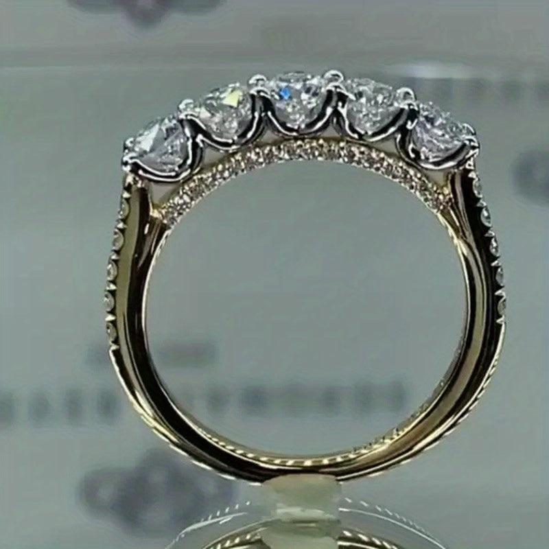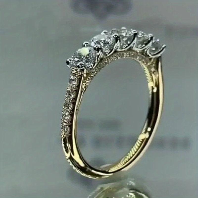 This elegant ring features a stunning design with zircon inlays. Perfect for engagements or weddings, this ring is made of high-quality materials.