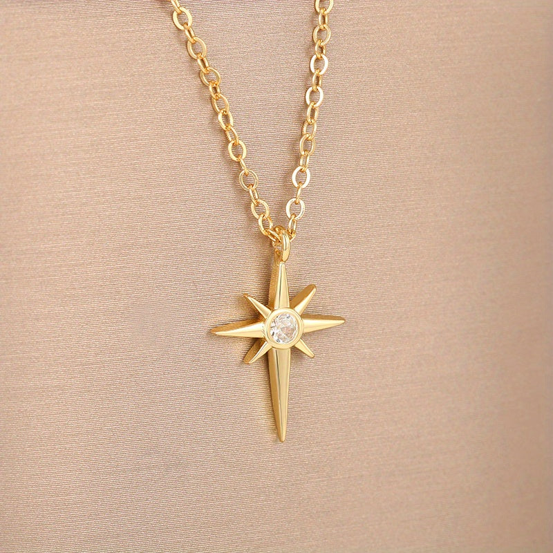 Elegant geometric star necklace plated in 18K gold, perfect for engagements and weddings.