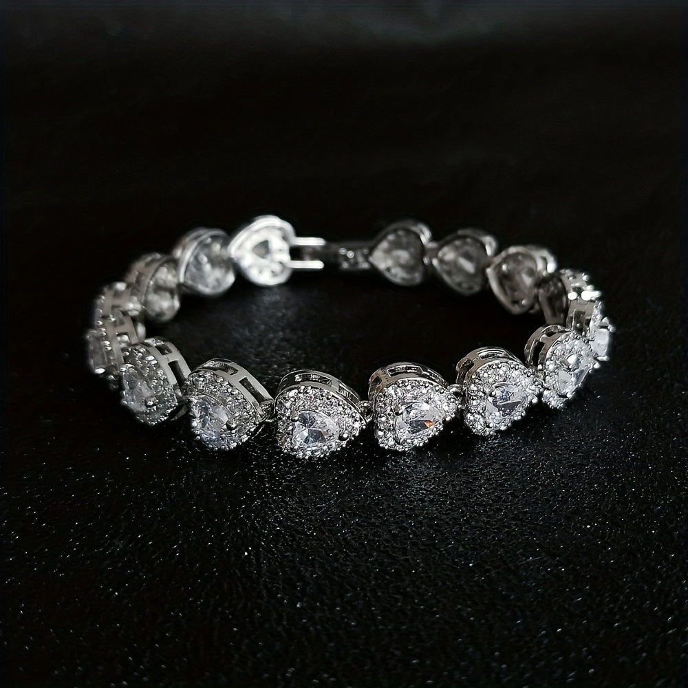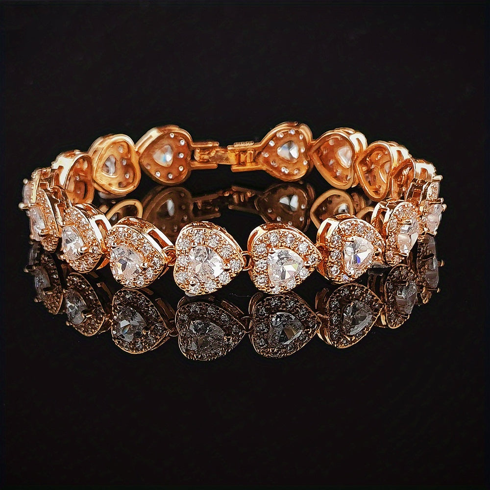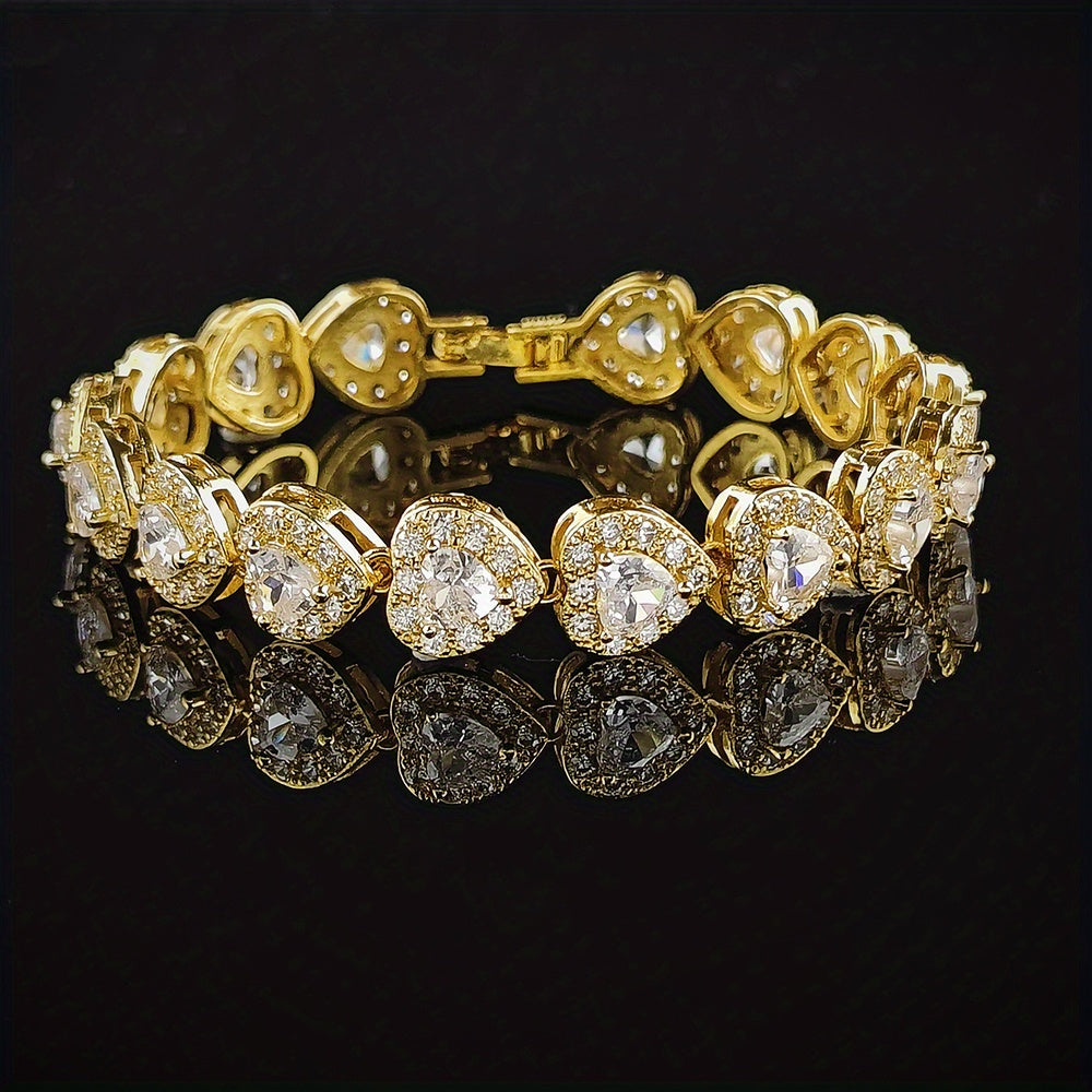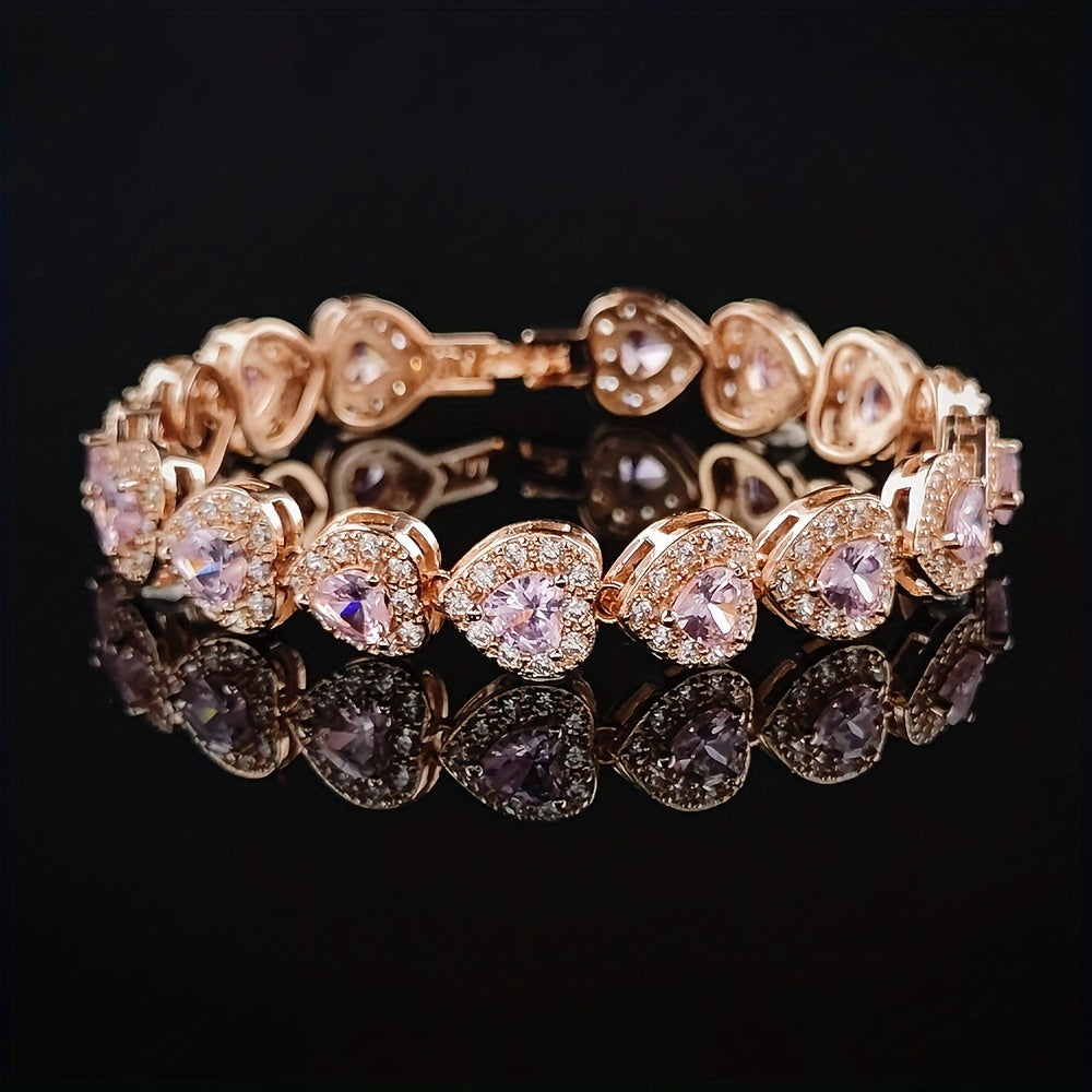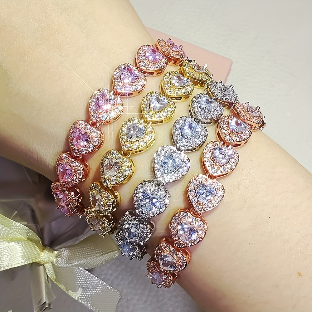 Add a touch of elegance with this stunning multicolor zircon bracelet featuring a heart inlaid design. Crafted with care and plated with 18K gold for a luxurious finish.