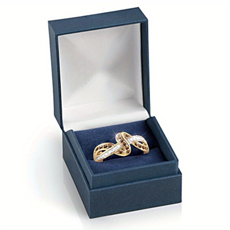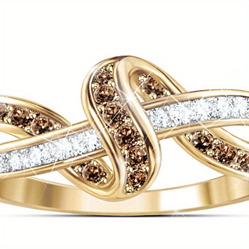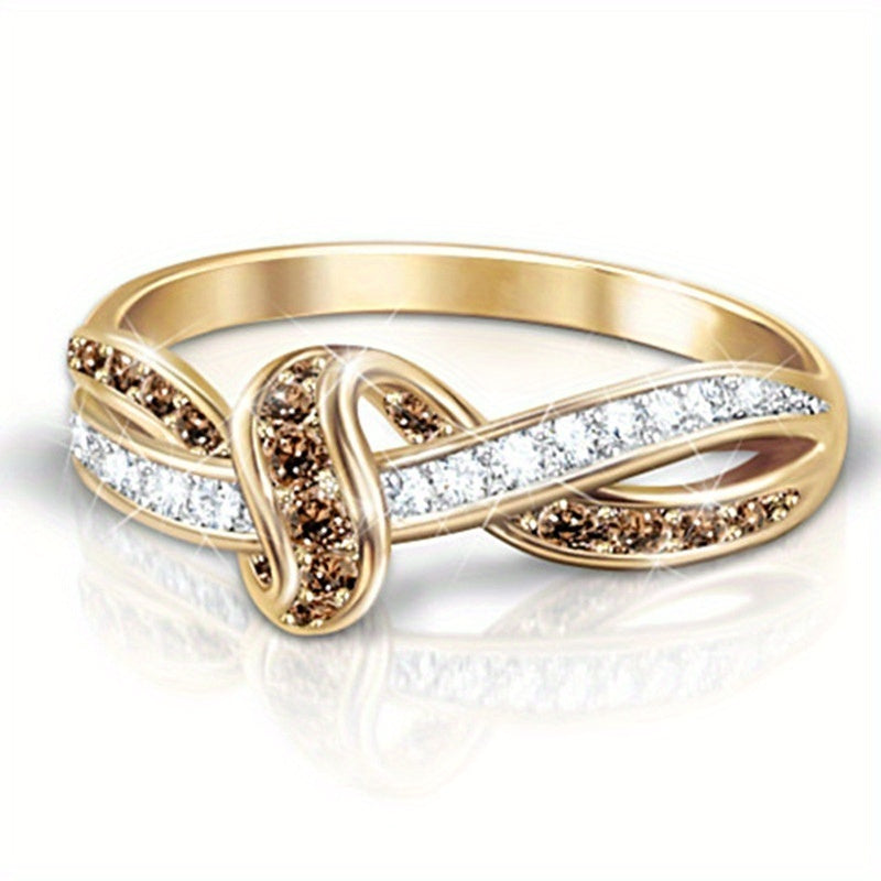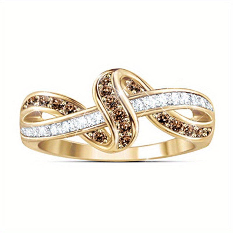 Elegant and stylish 18K plated alloy ring featuring character line winding design with zircon inlay. Perfect for daily casual wear or special occasions like engagement parties.
