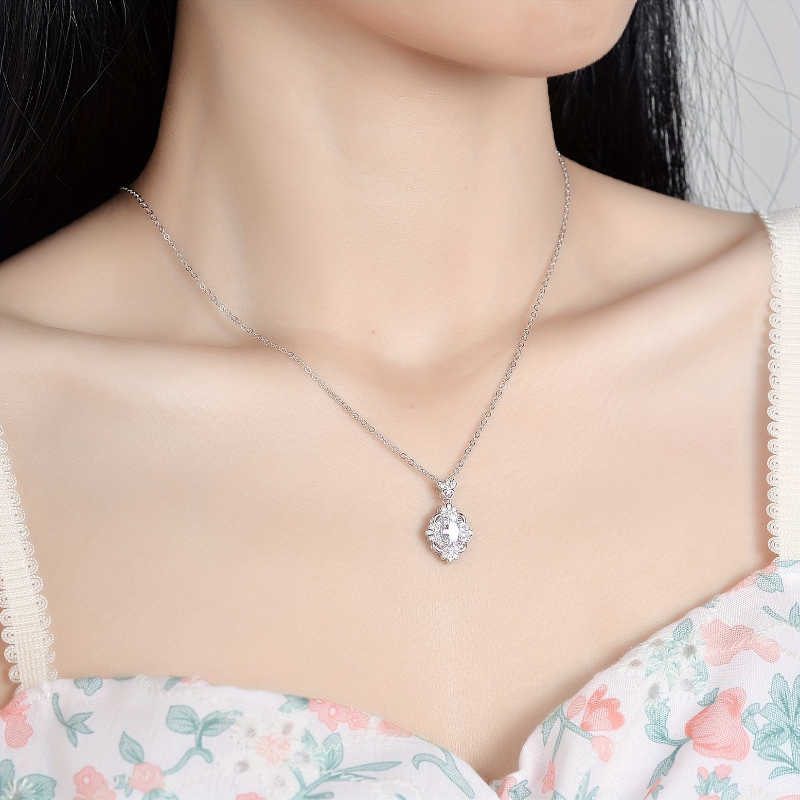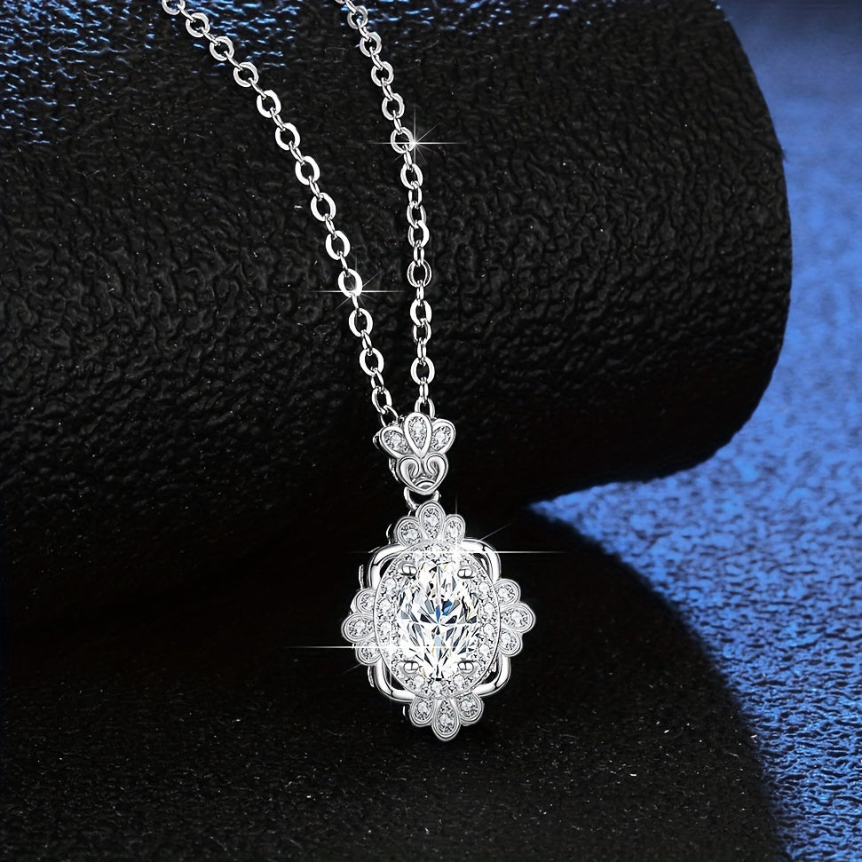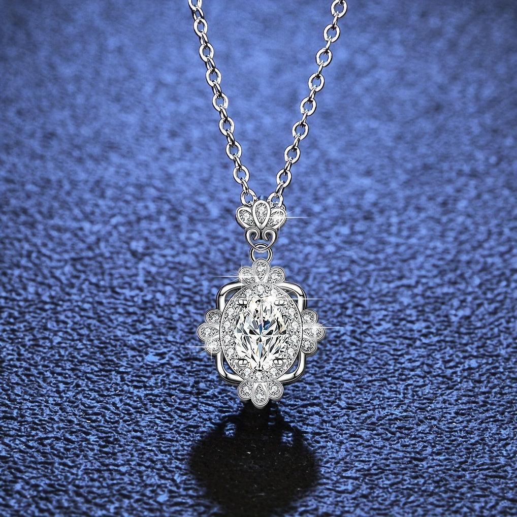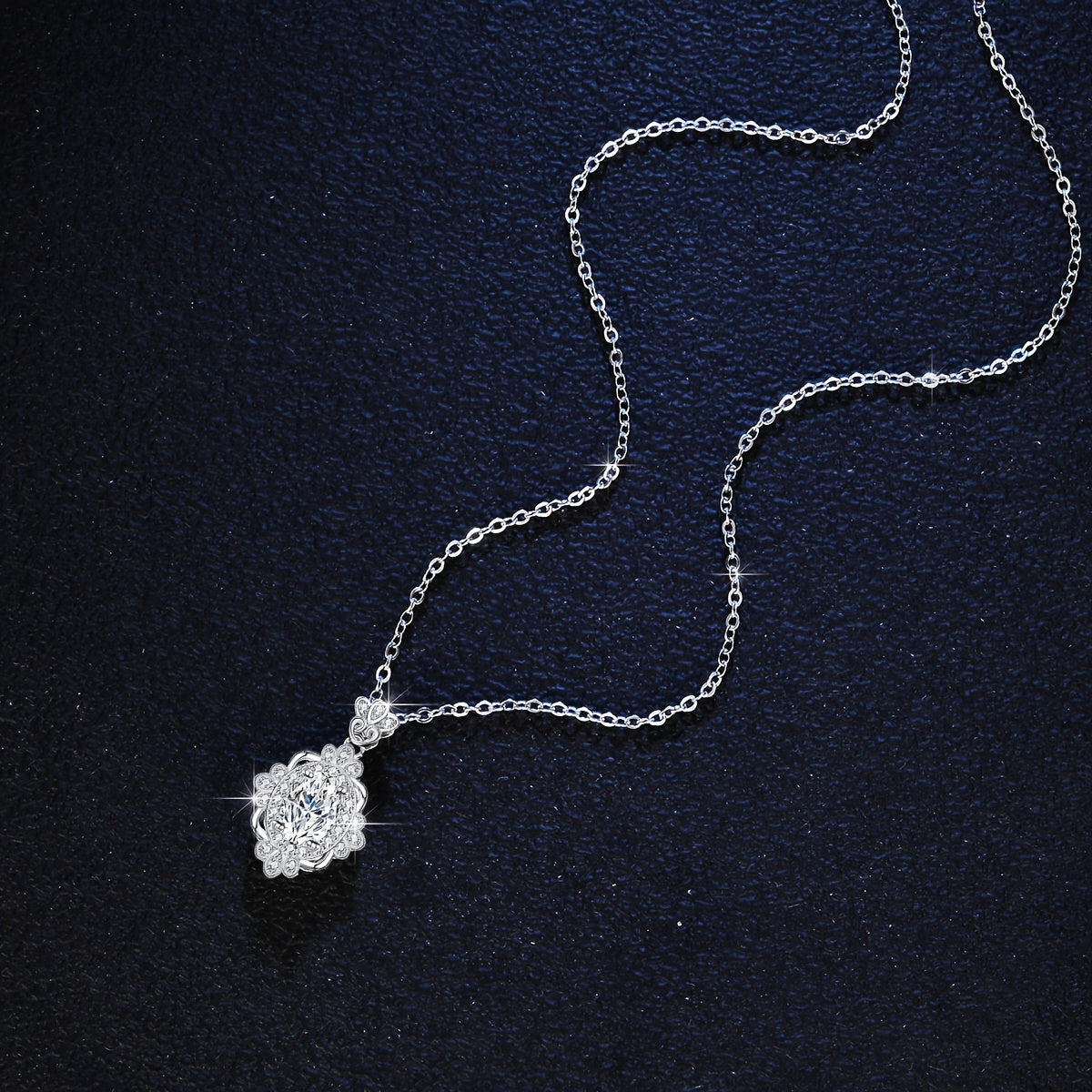 This elegant necklace features a 1CT 5 7mm egg-shaped moissanite set in a 925 silvery oval pendant. It makes a stunning addition to any jewelry collection.
