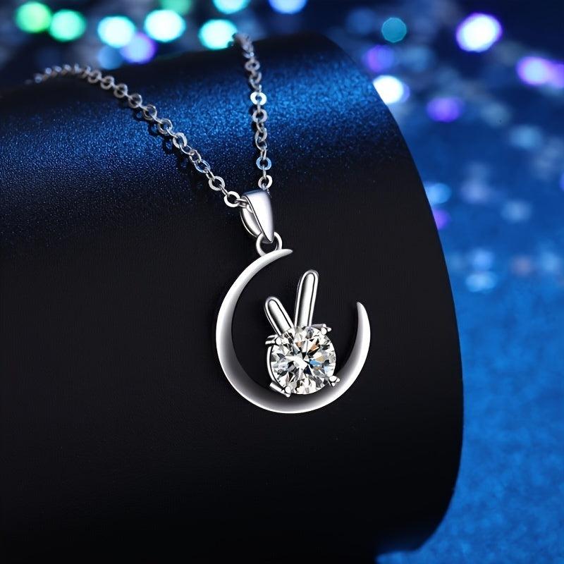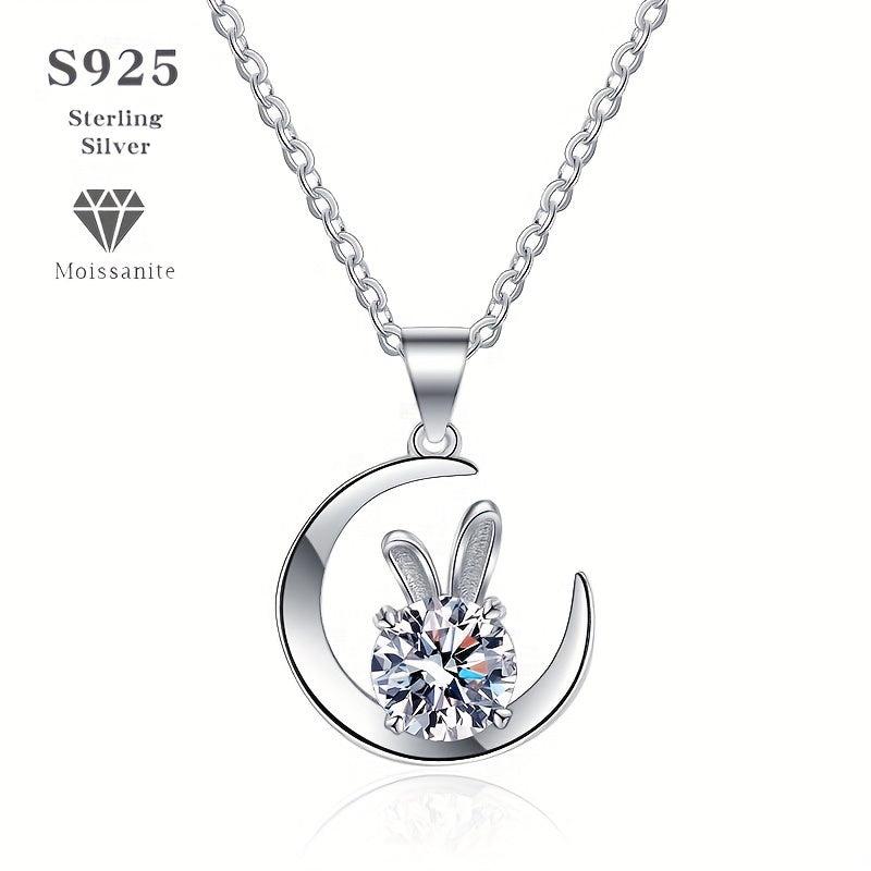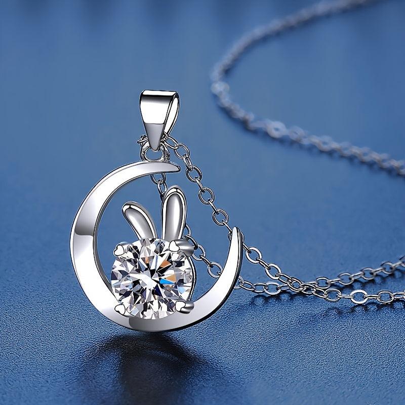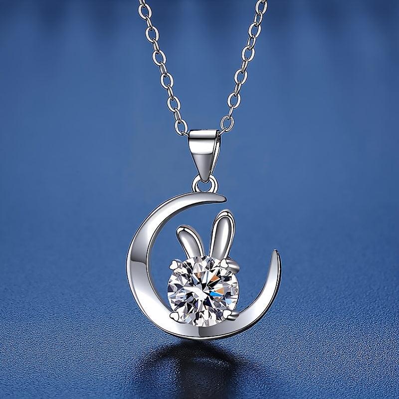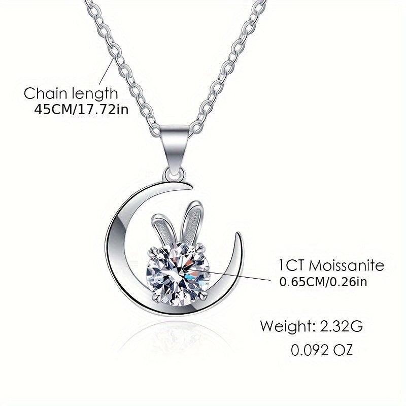 This exquisite pendant features a 1CT Moissanite moon rabbit design, perfect for gifting to your wife on Easter or Halloween. Made of high-quality 925 sterling silver, this delicate necklace is a stunning addition to any jewelry collection.