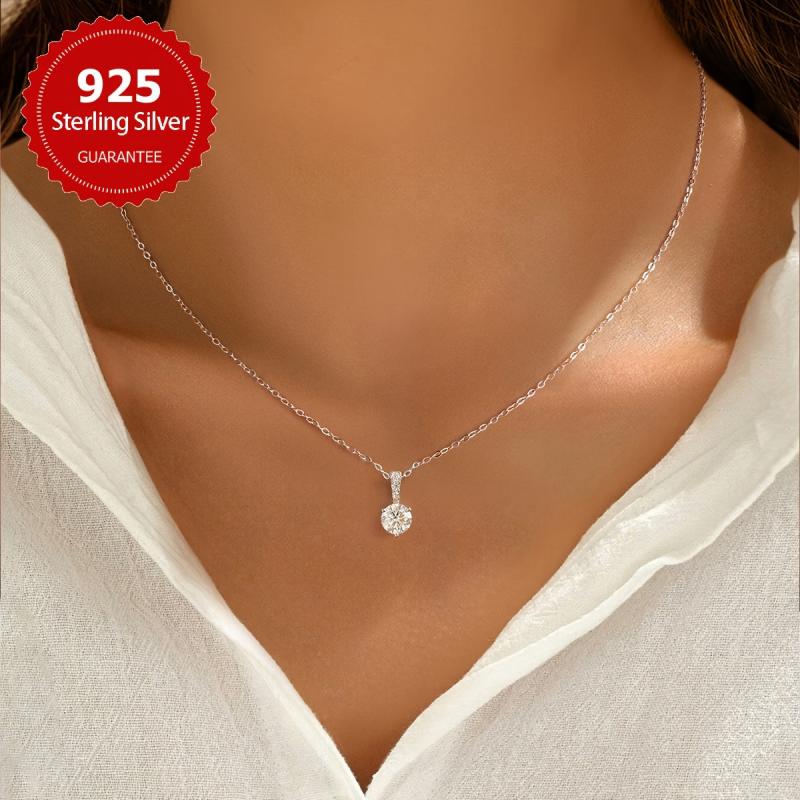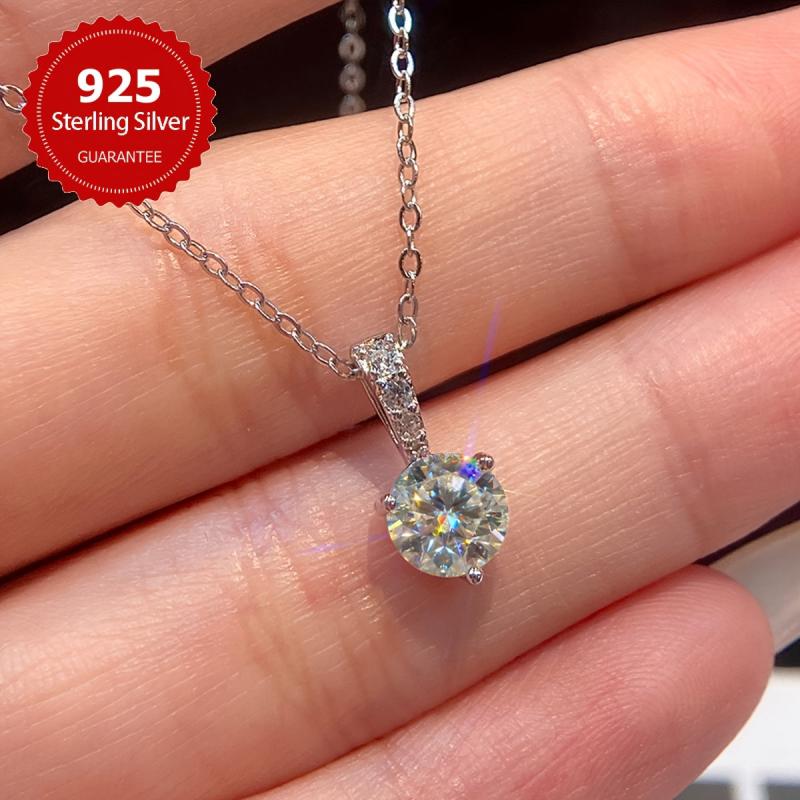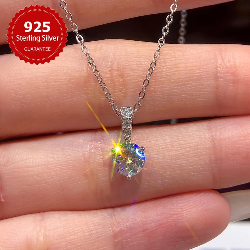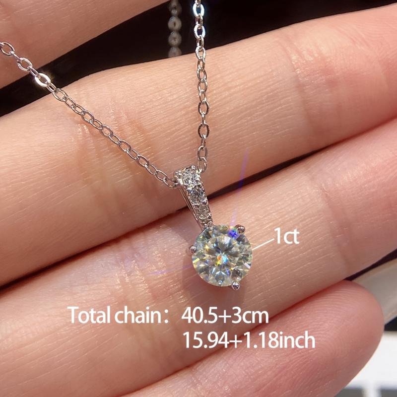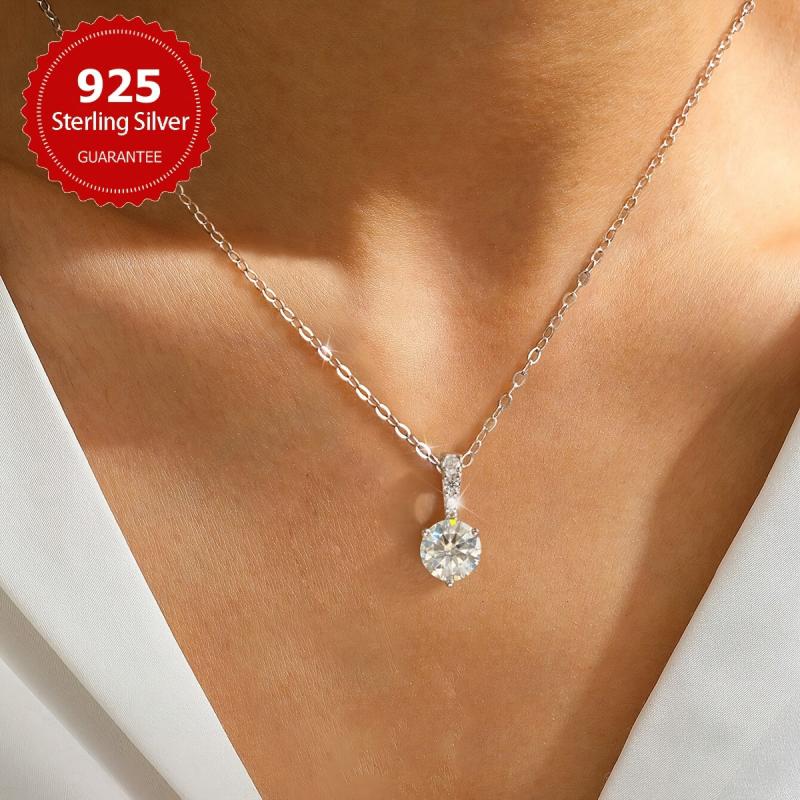 This elegant pendant necklace features a 1ct Moissanite stone set in a 925 sterling silver setting. It makes a perfect gift for a wedding or anniversary, symbolizing eternal love and commitment.