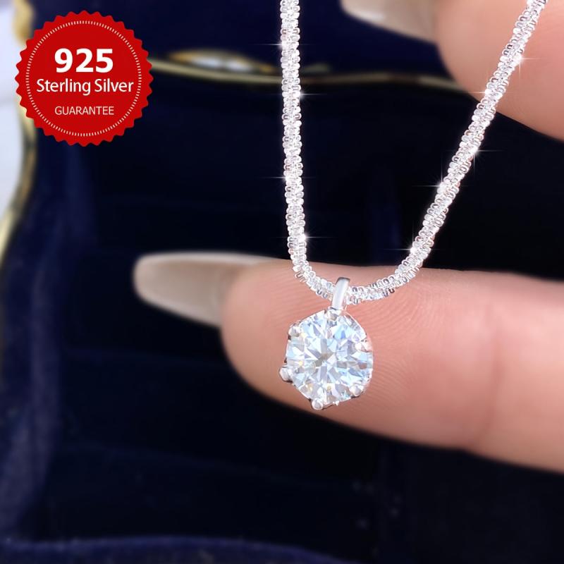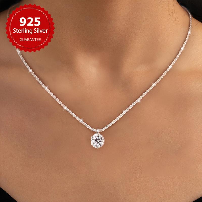 Illuminate your look with this 1ct Moissanite pendant necklace. Crafted in s925 pure silvery, it is perfect for weddings, promises, or as a gift for a mother.