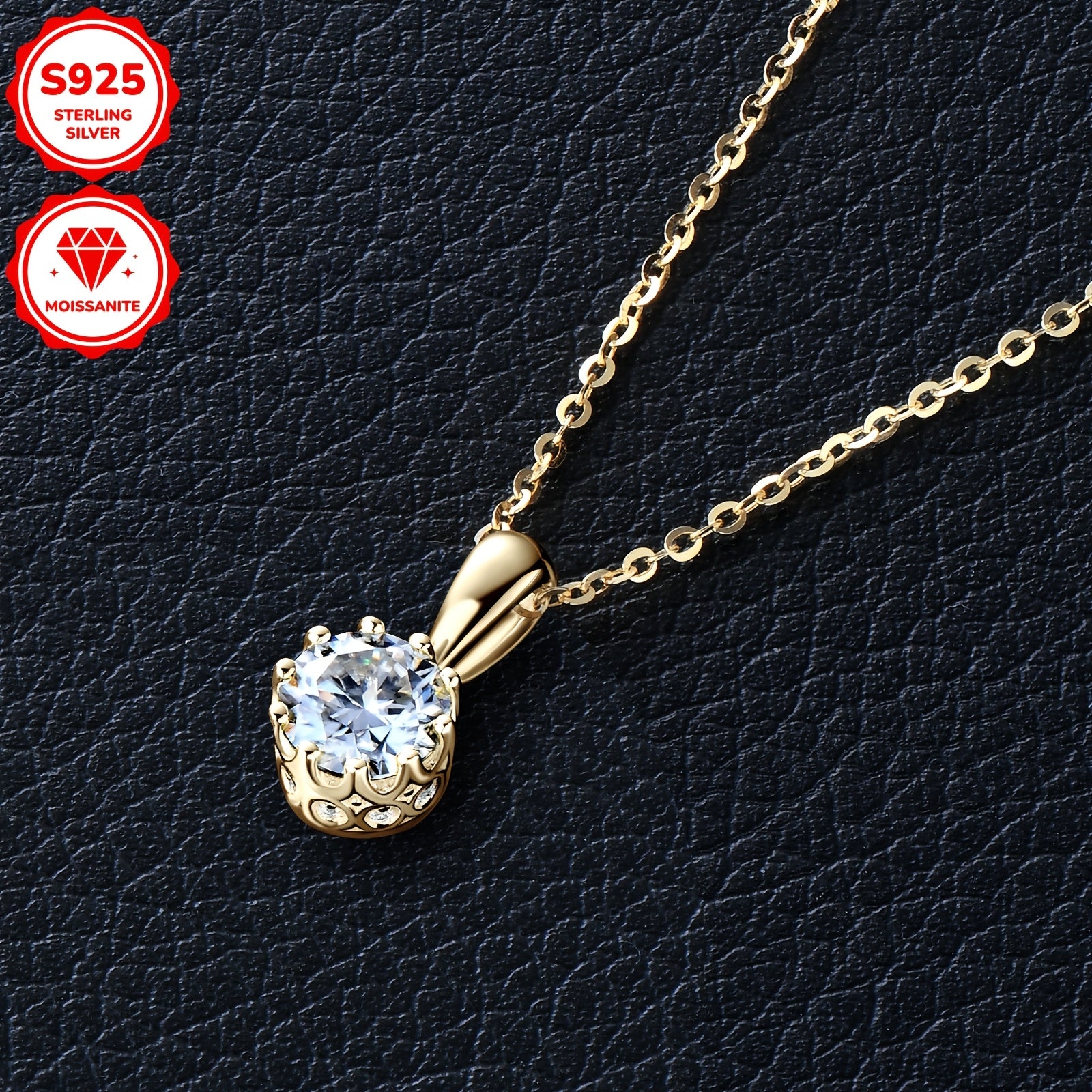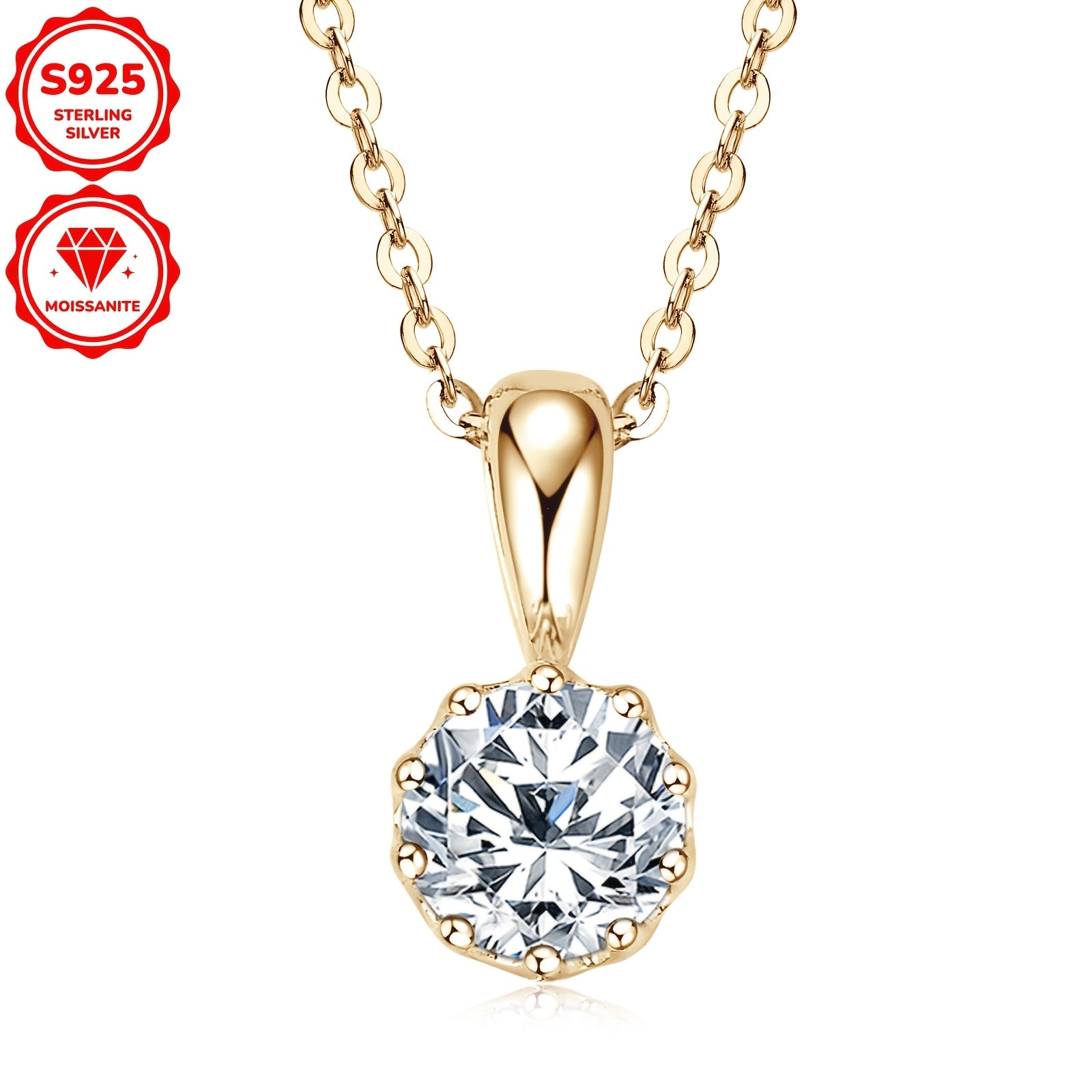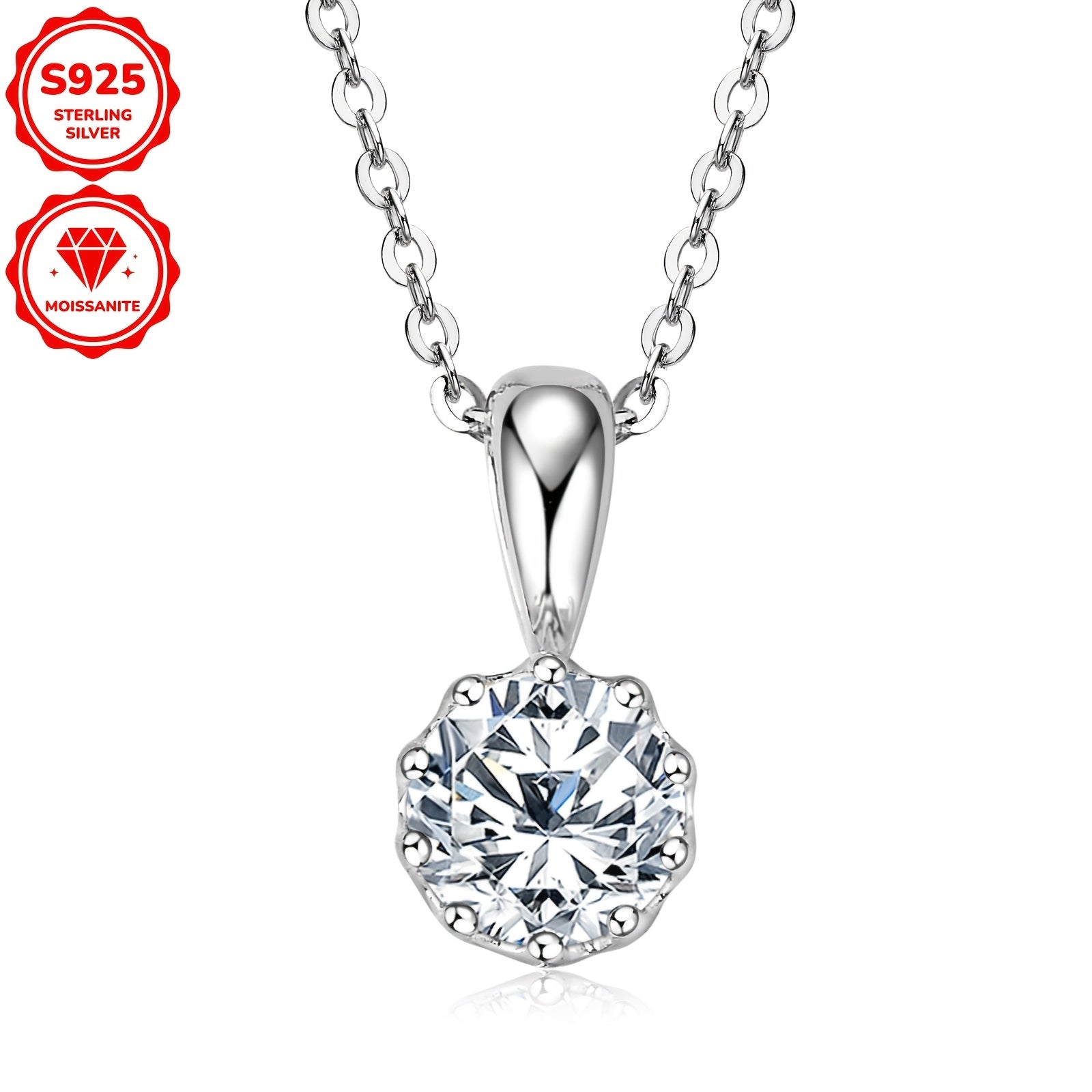 1ct Round Moissanite Necklace 925 Sterling Silver Pendant