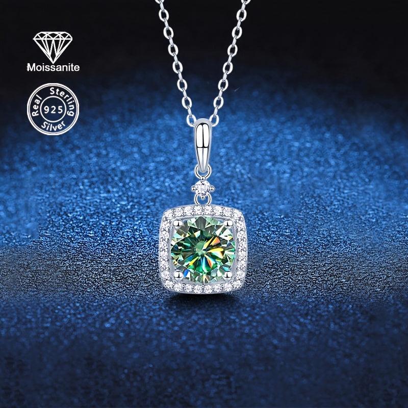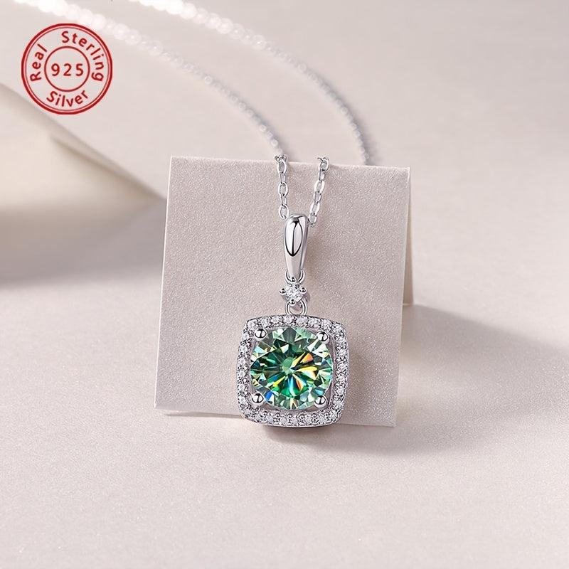 Elegant and versatile, this pendant necklace features a 2 carat Moissanite emerald cut stone set in high-quality 925 sterling silver. Perfect for daily wear, parties, Christmas, Thanksgiving, birthdays, weddings, and anniversaries.