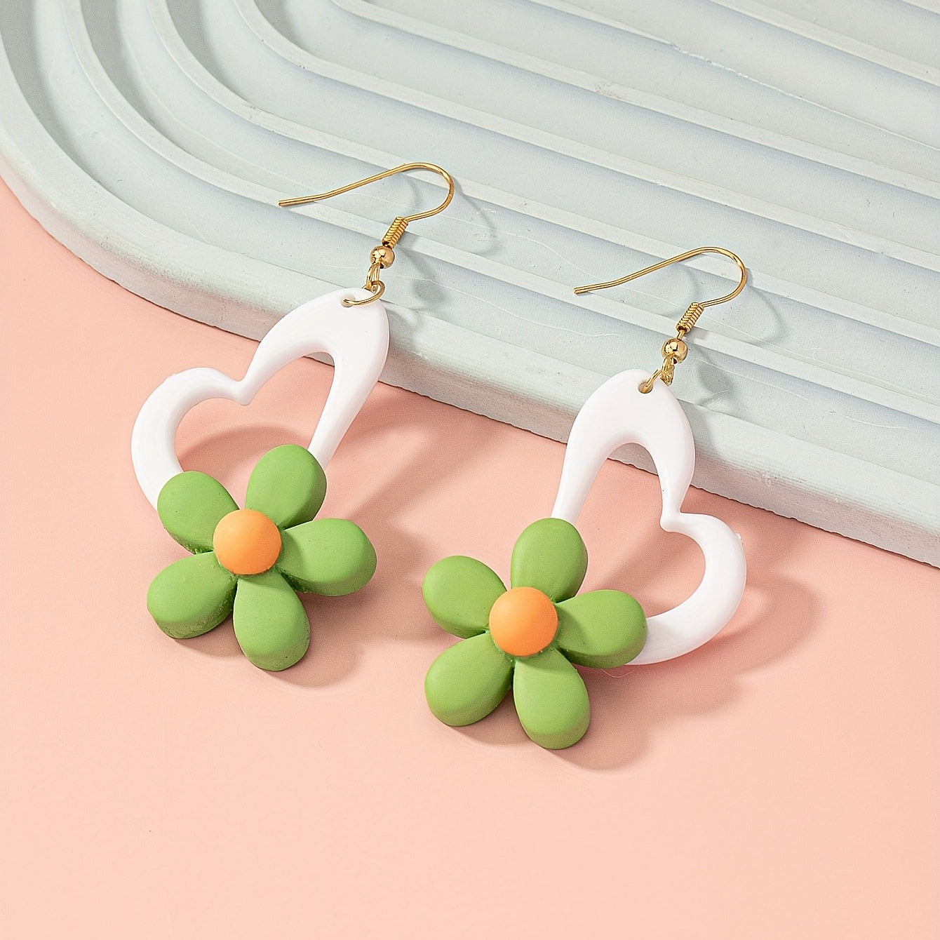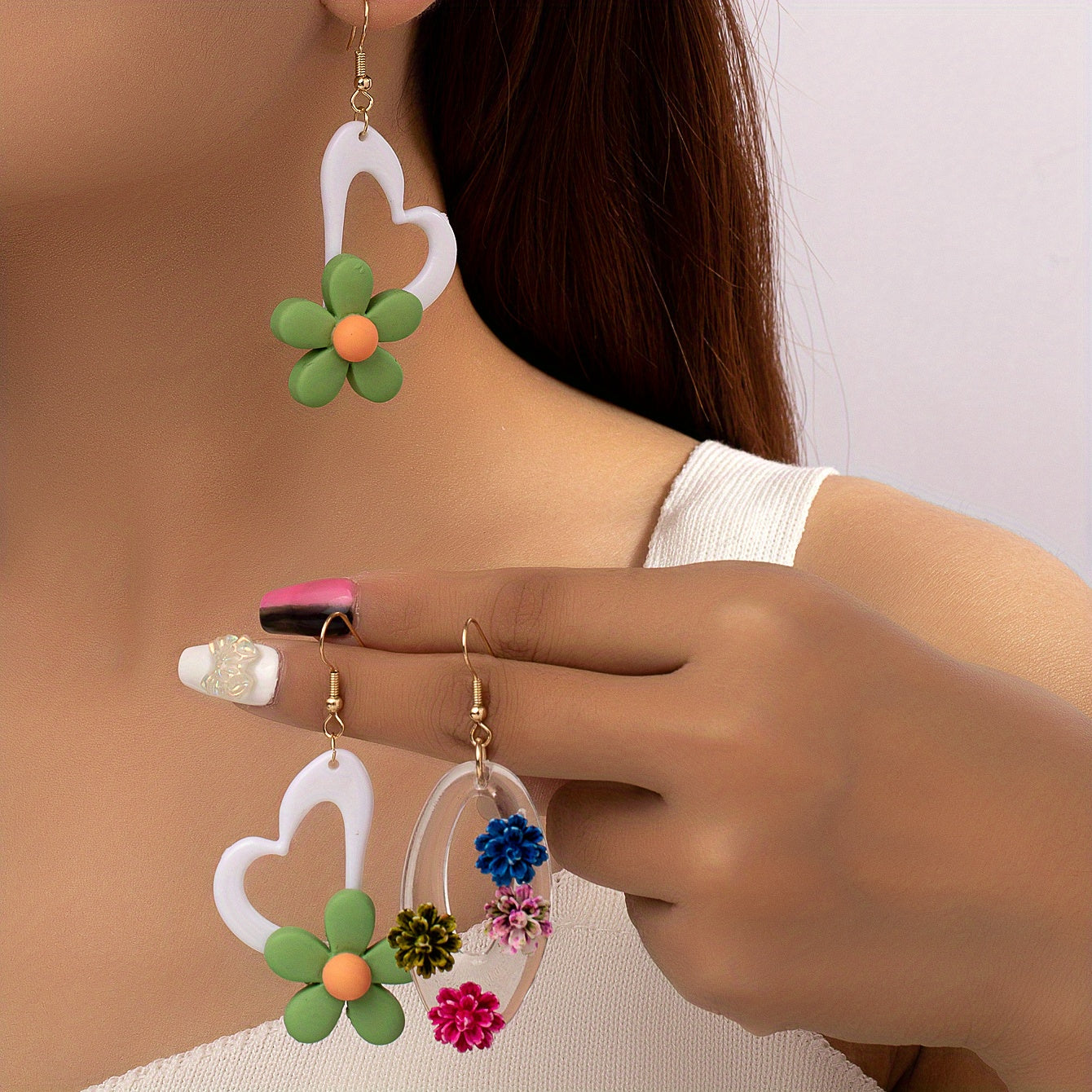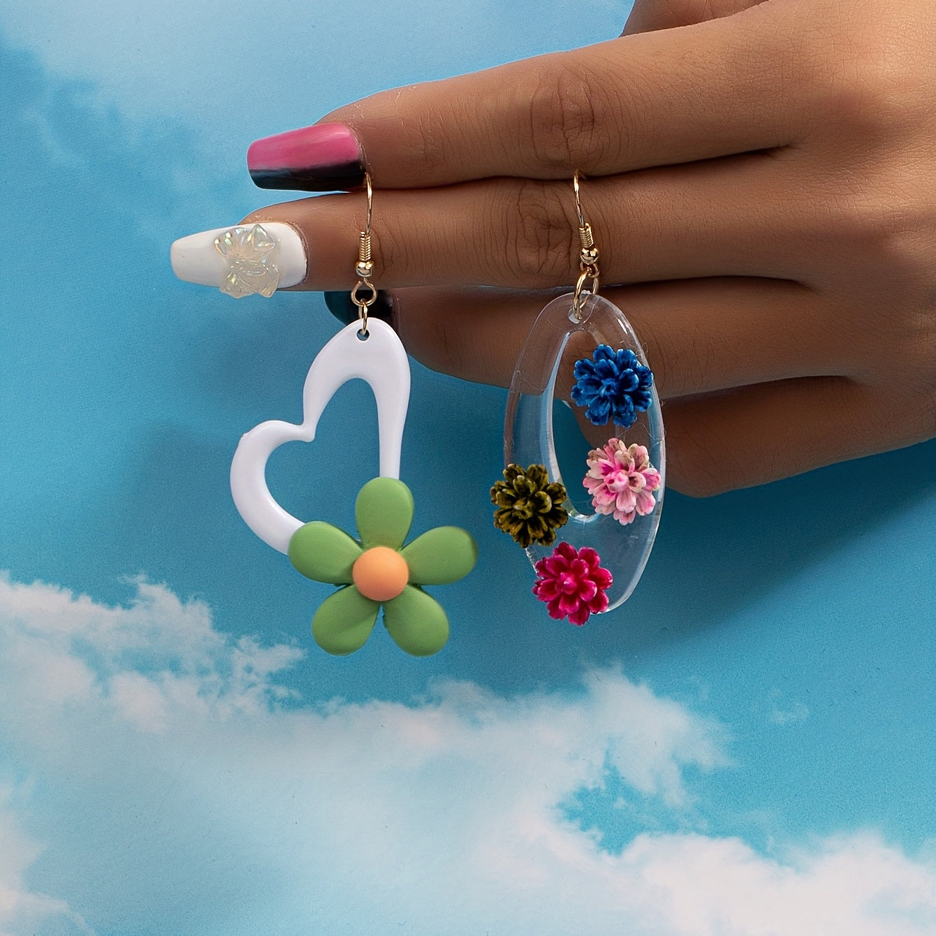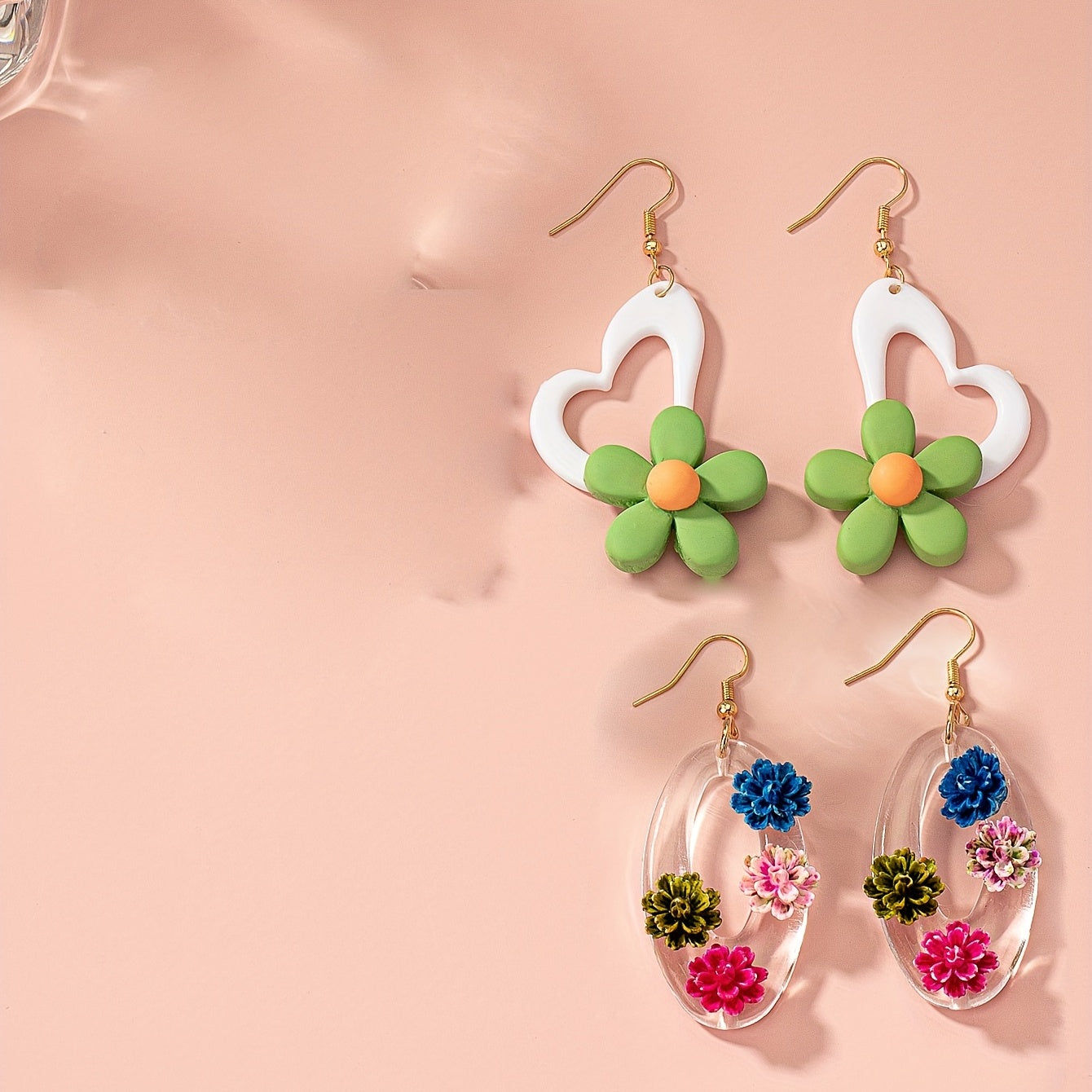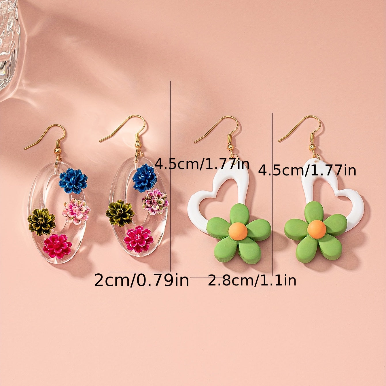 Add a touch of bohemian style to your look with this set of 2 pairs of flower elements dangle earrings. Made of zinc alloy, these delicate earrings are a perfect gift for women and girls.
