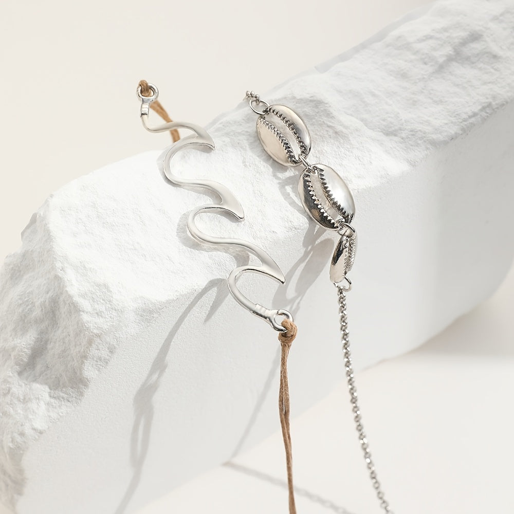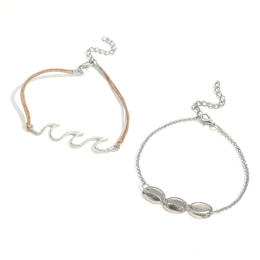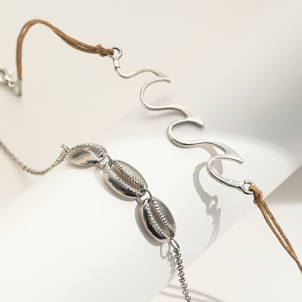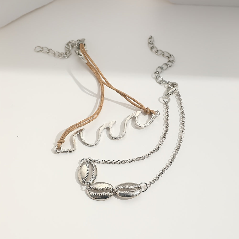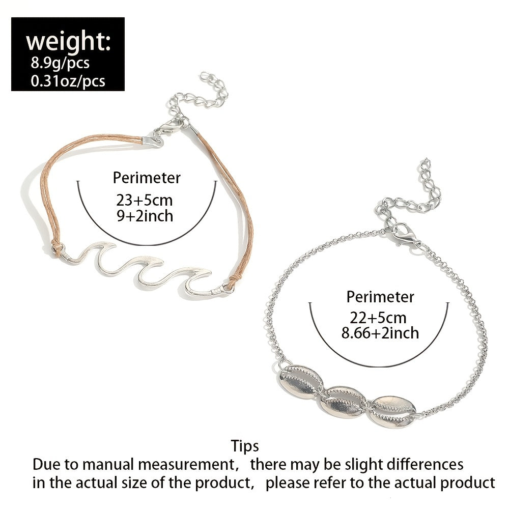 Elevate your summer style with this set of 2 boho chic anklets featuring shell-shaped pendants. These adjustable ankle bracelets are perfect for beach outings and casual wear.