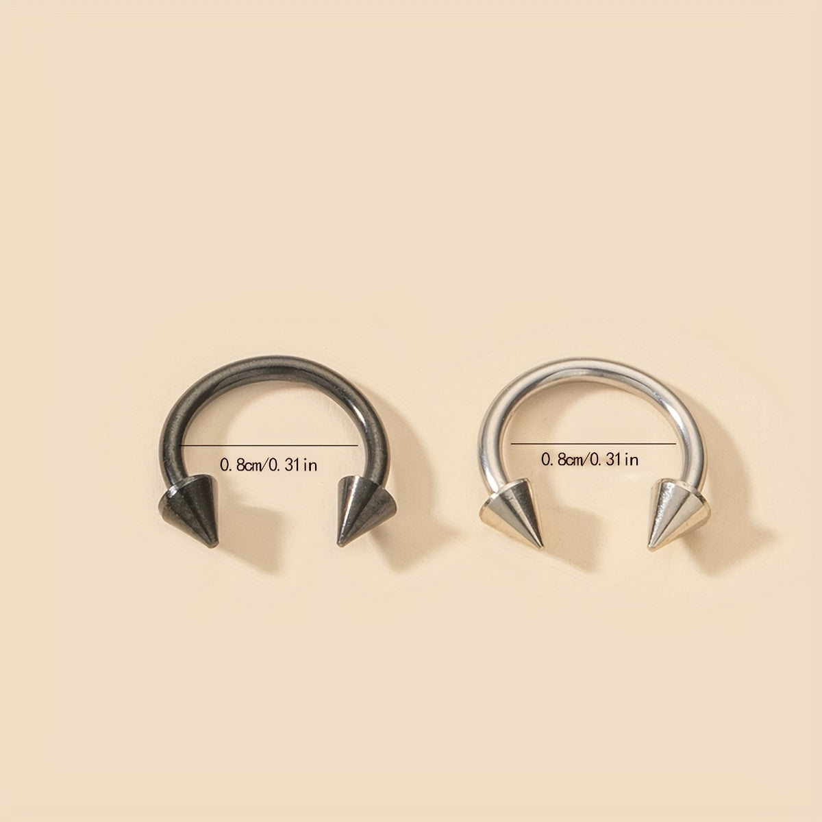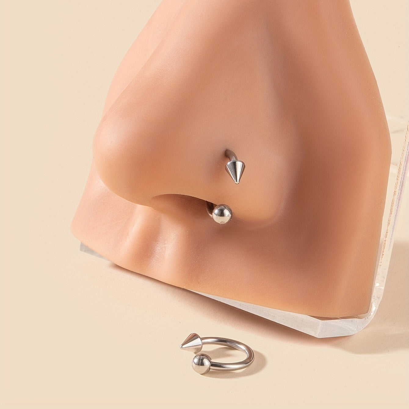 This set includes 2 C-shaped nose septum nostril nails for a stylish and edgy look. Made of high-quality materials, these piercings are a perfect addition to your body jewelry collection.
