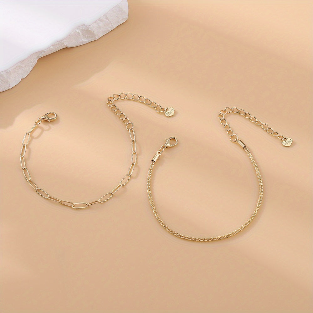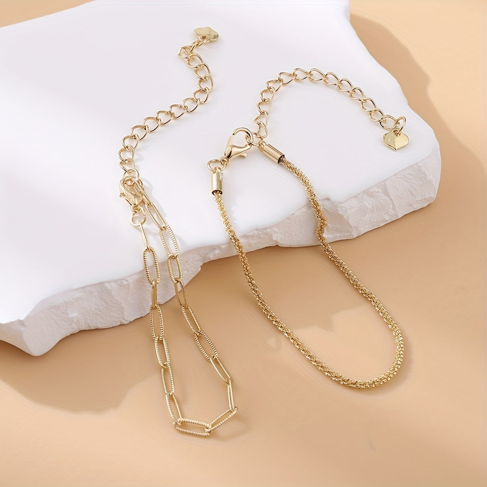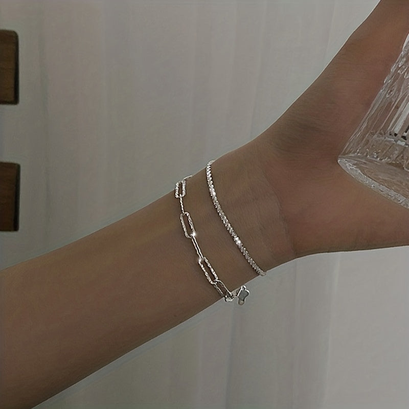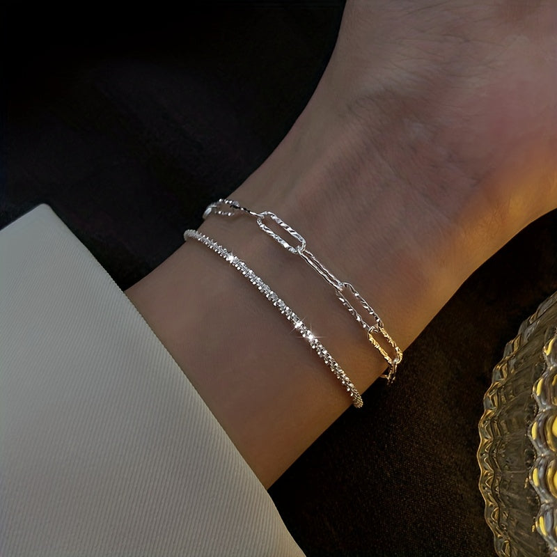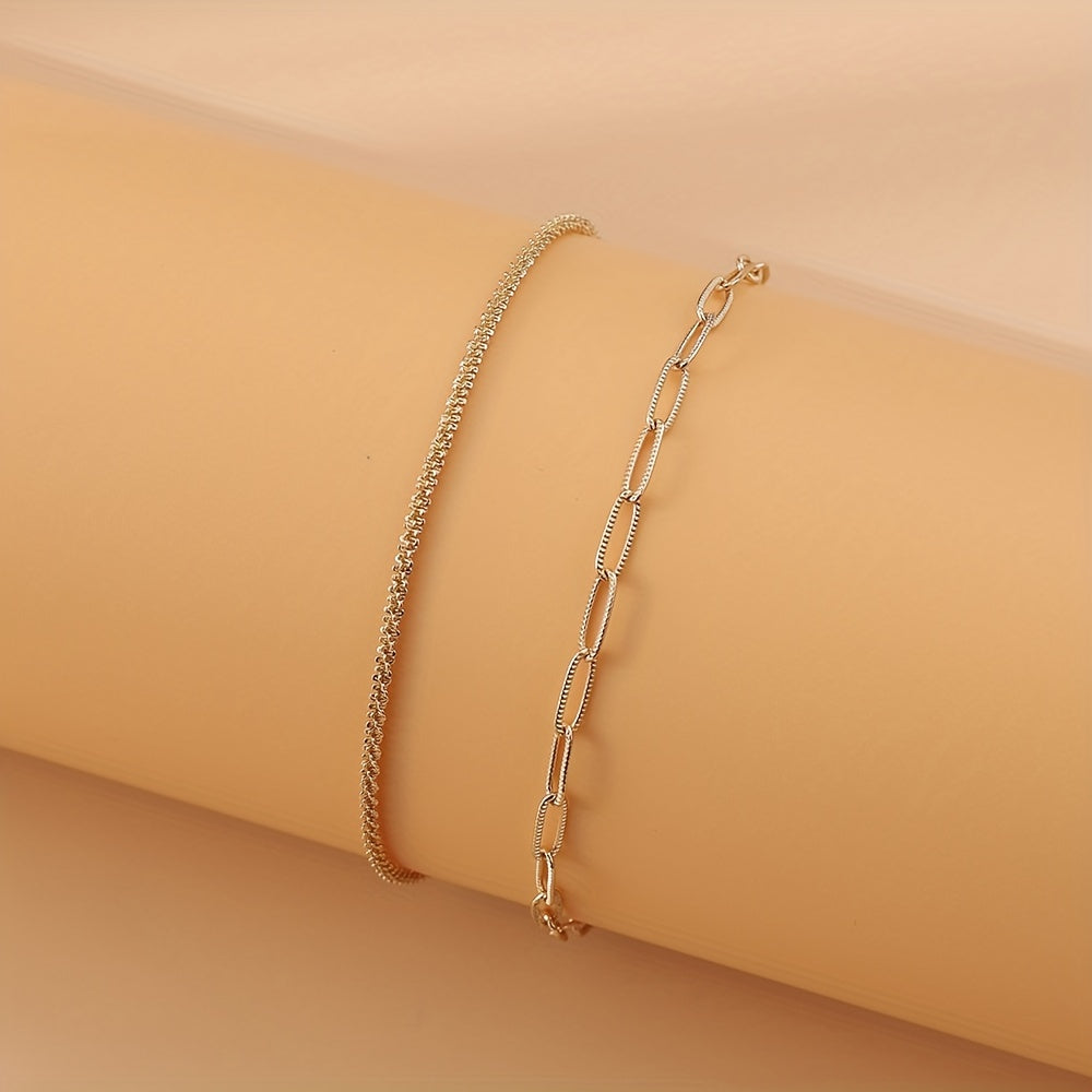 Elevate your style with this stackable chain bracelet set that features two layers of chains for a trendy look. Perfect for adding a touch of elegance to your outfit.