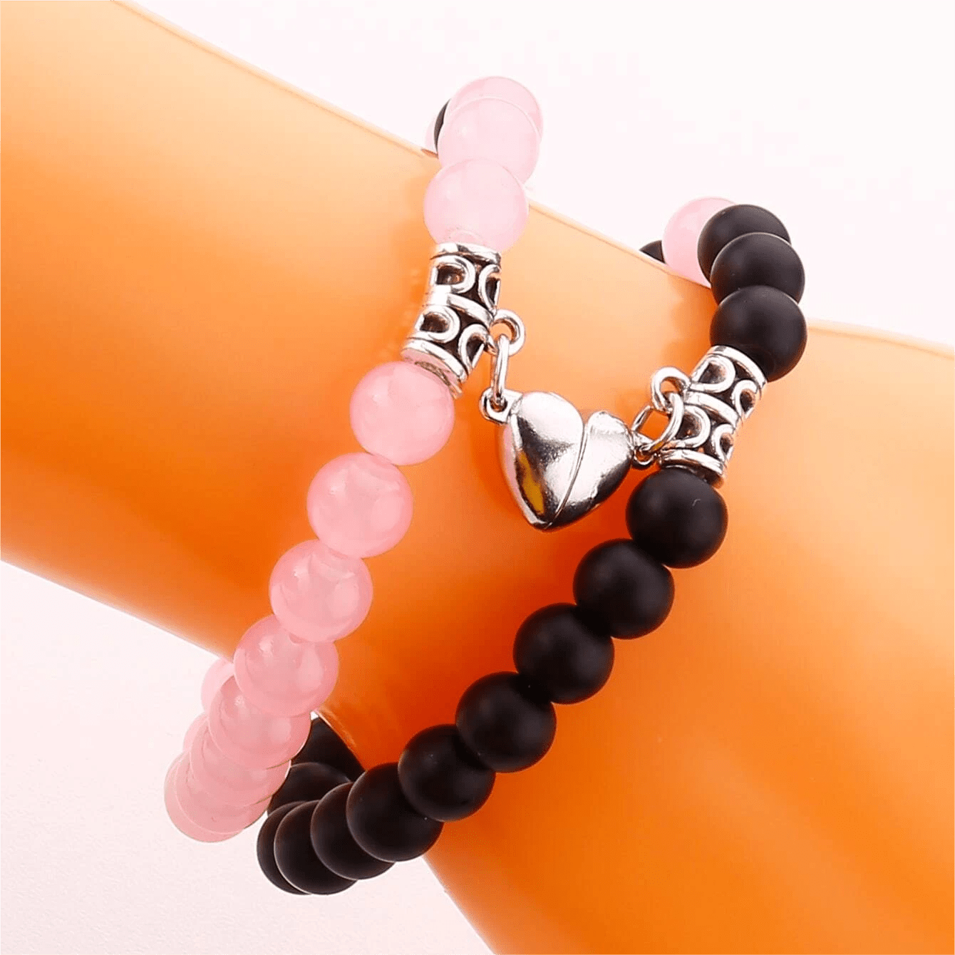 Strengthen your bond with this couple magnetic bracelet set. The pink beaded design is a lovely symbol of your relationship. Perfect birthday gift for your partner.