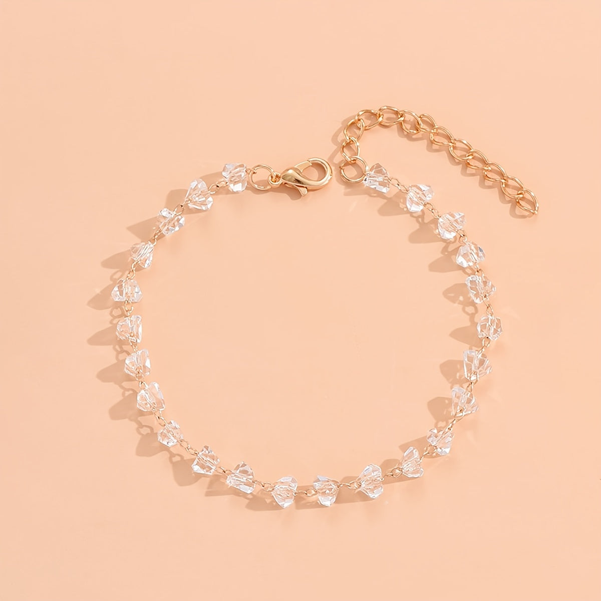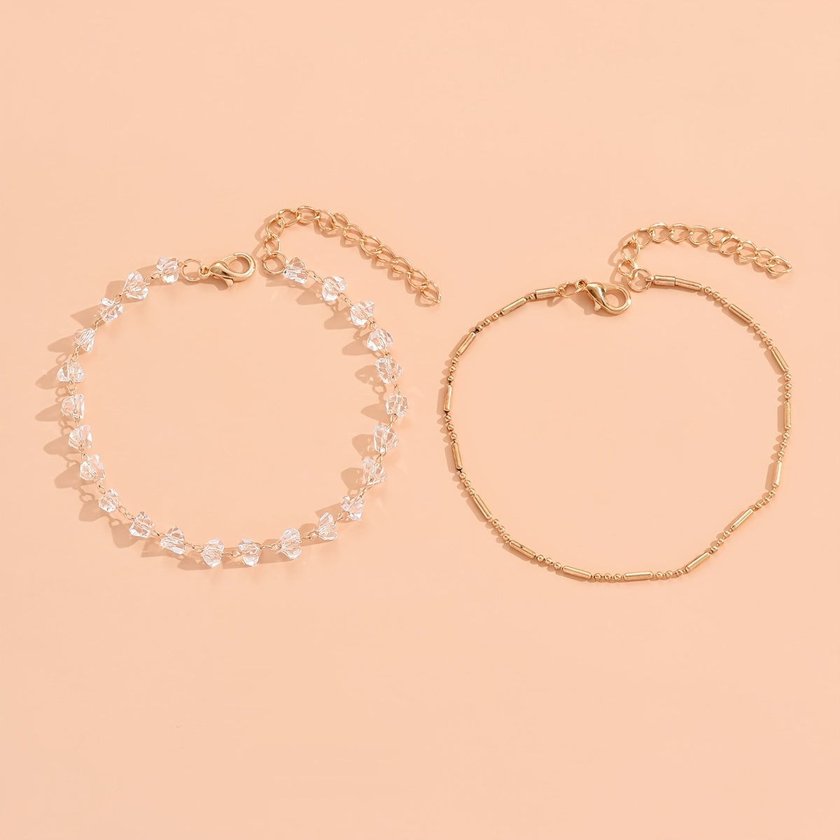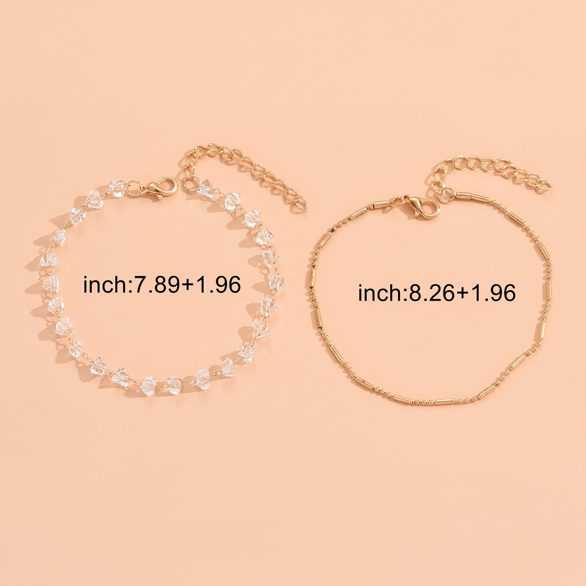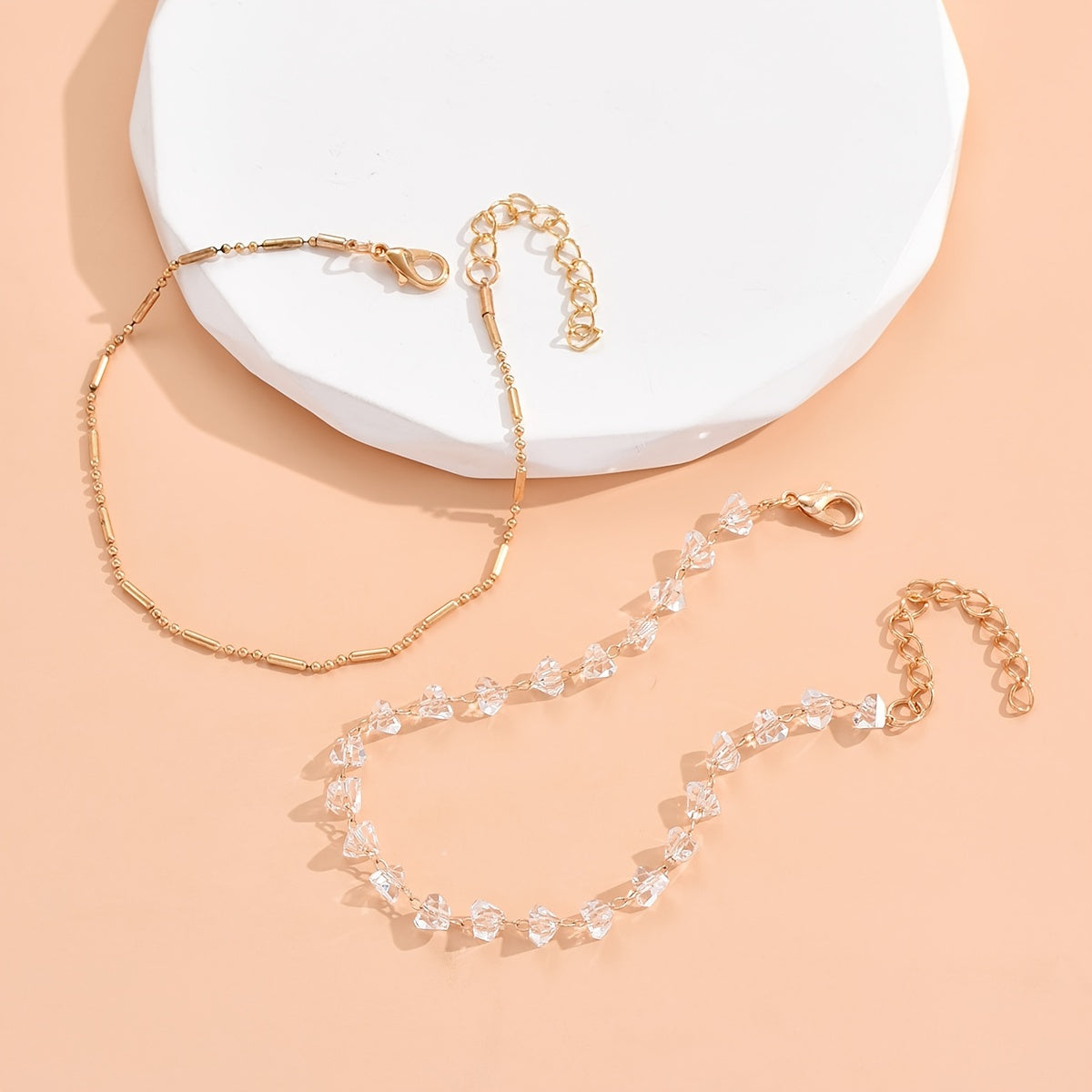 Stay in style with these minimalist ankle chain bracelets featuring crystal beads. Perfect for summer and beach outings, these dainty anklets add a touch of elegance to your look.