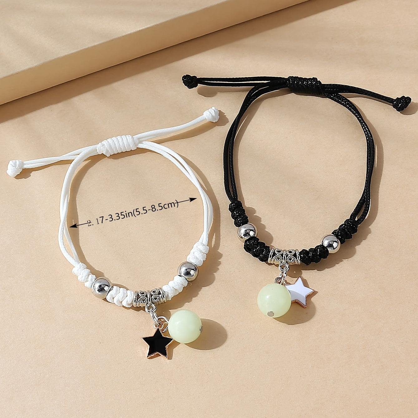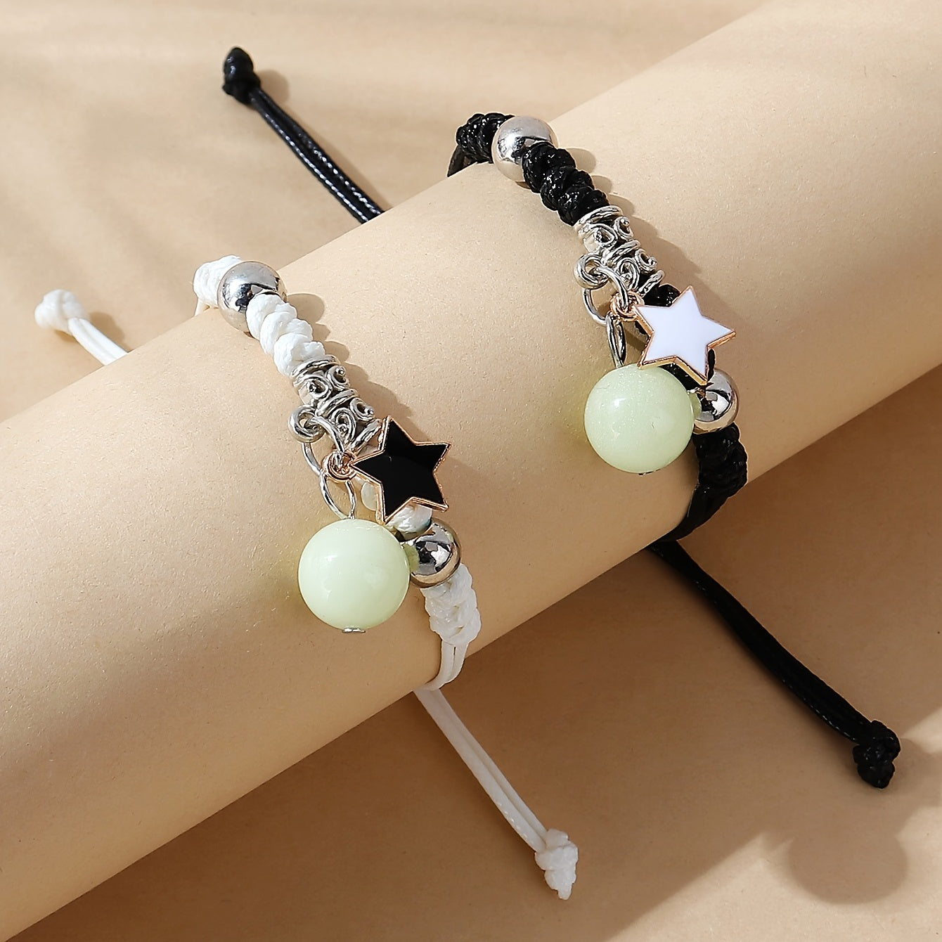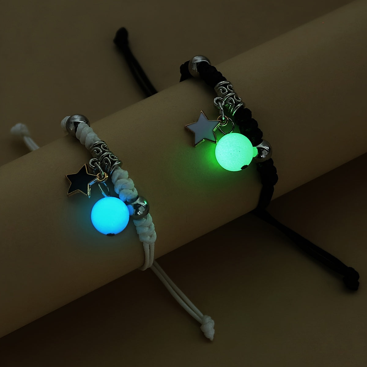 This set includes 2 adjustable braided rope bracelets with luminous ball star pendants, perfect for couples. Ideal Valentine's Day decorations gift.